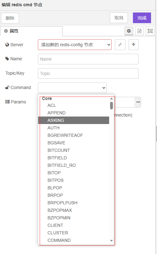 【redis-cmd】是一个多功能综合节点,有关redis的常用读写操作和订阅推送都能通过该节点去实现。