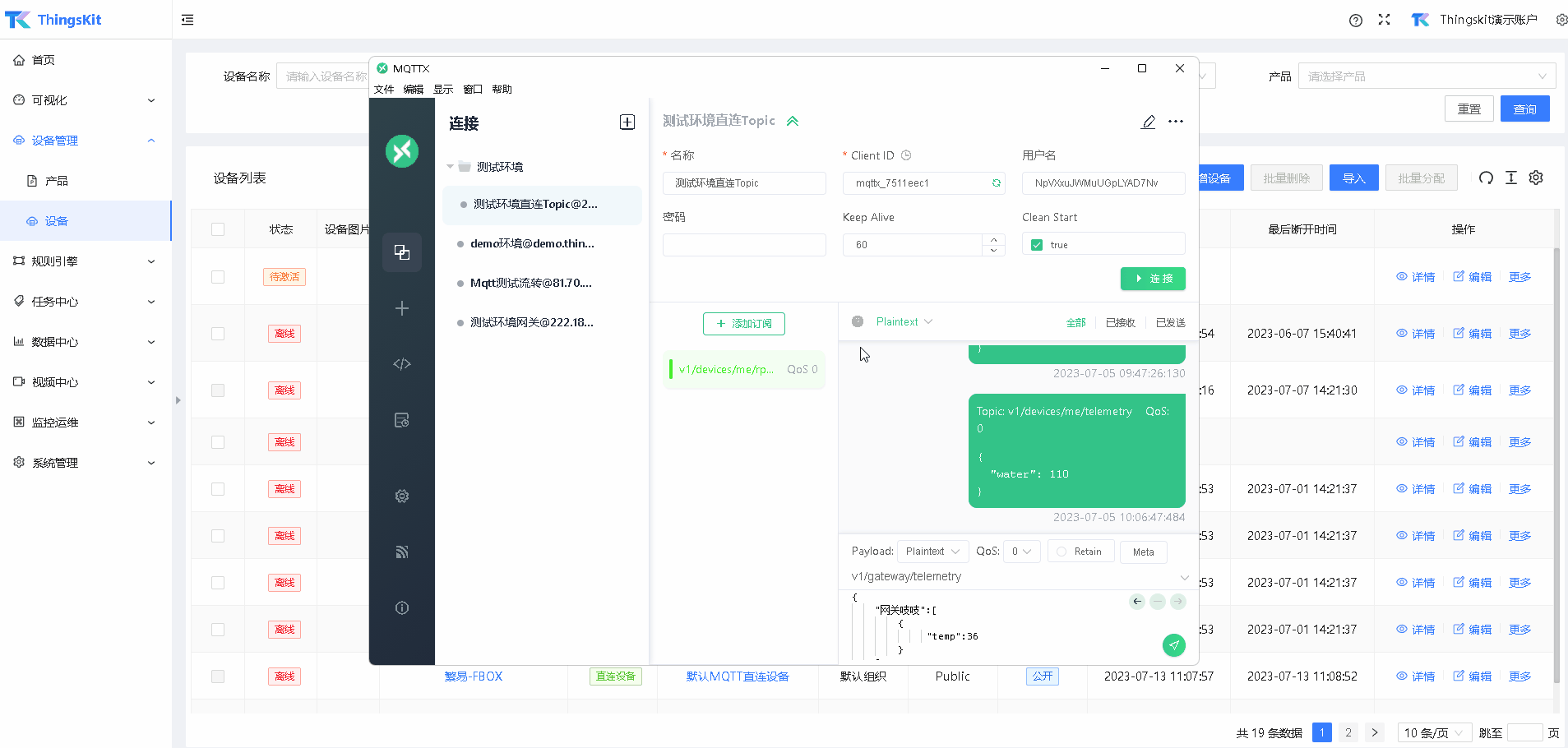 通过模拟MQTT工具连接平台
