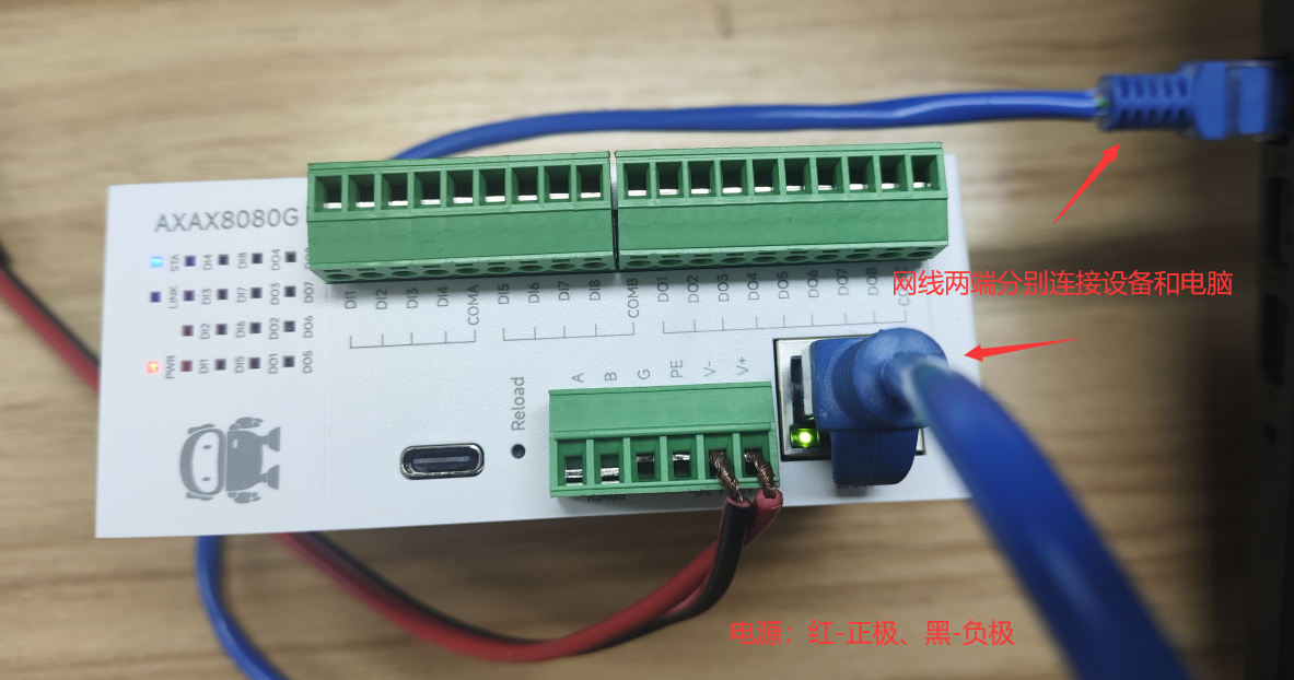 1-2-1、EBYTE-M32-AXAX8080G通过网线连接电脑设备接线图: