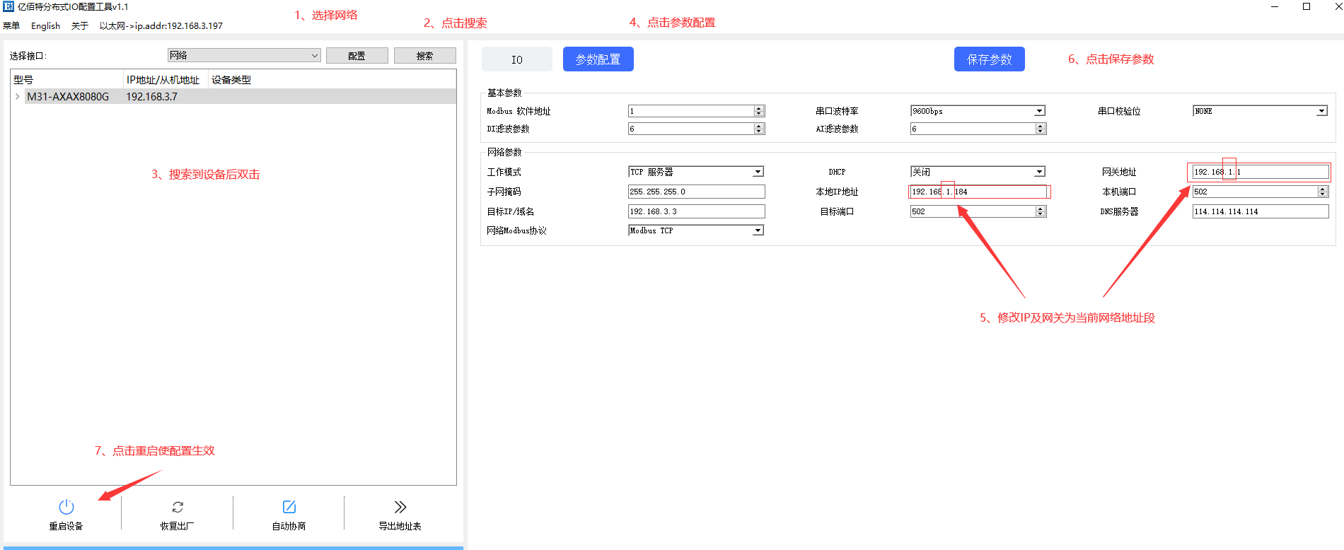 1-2、通过以太网连接设备EBYTE-M32-AXAX8080G并进行信息配置