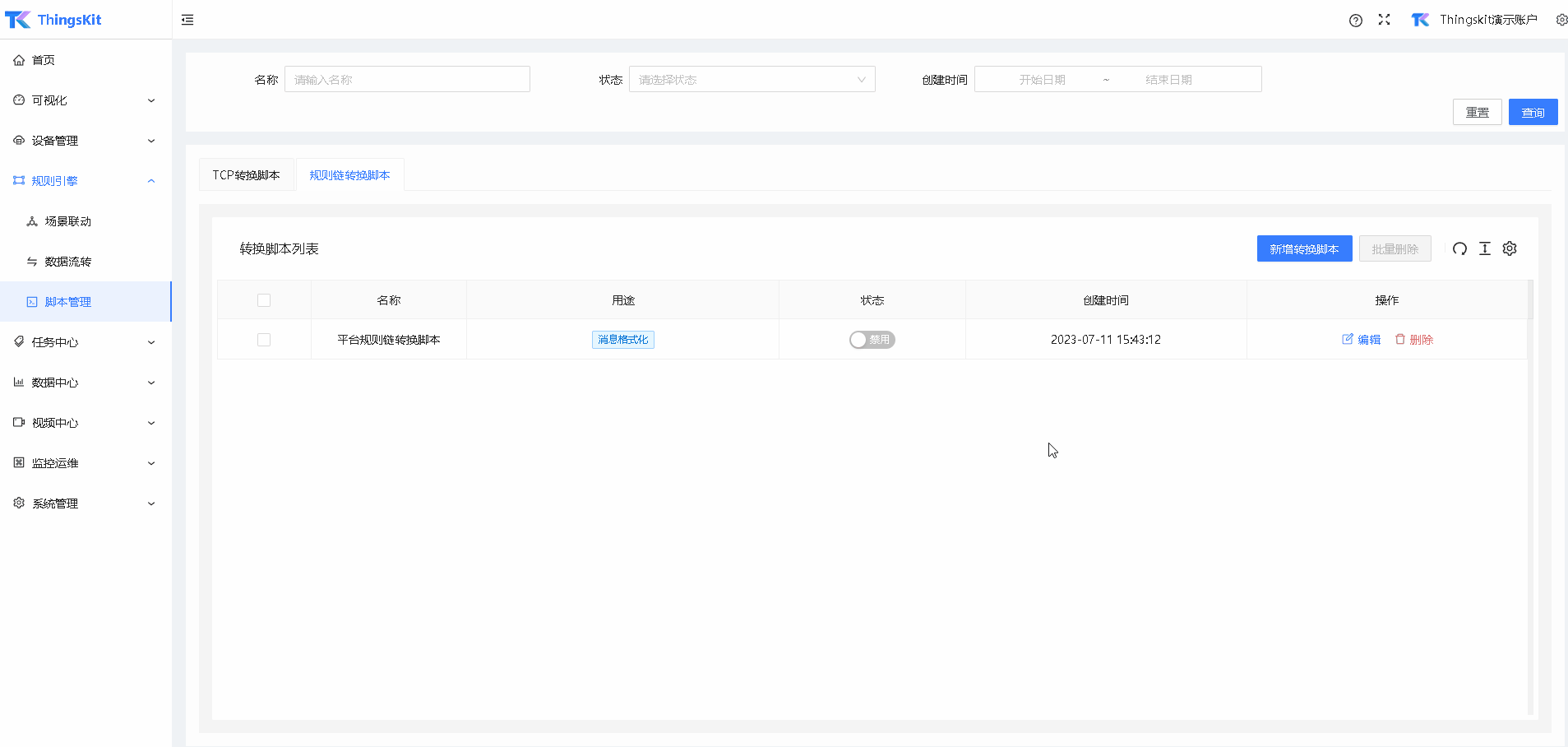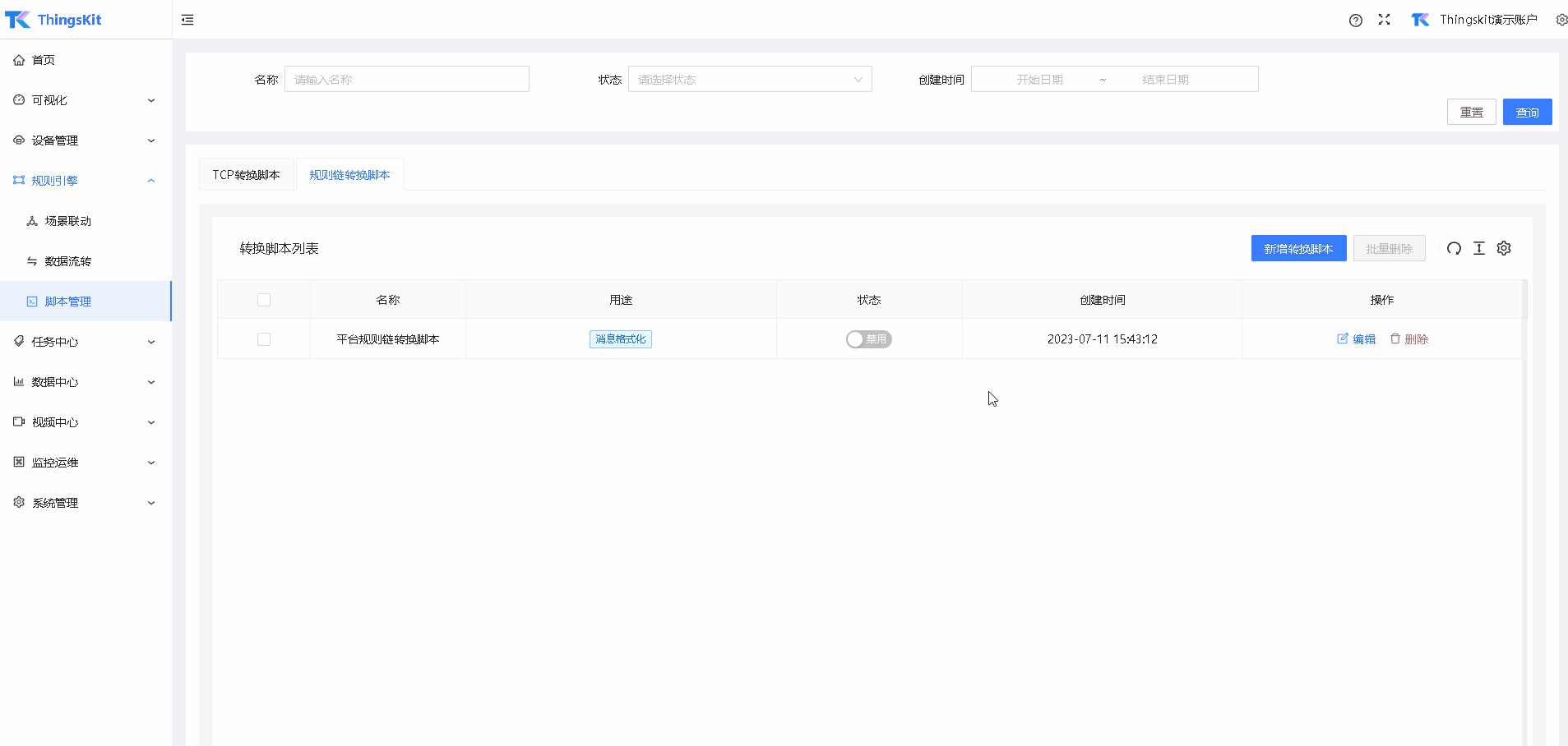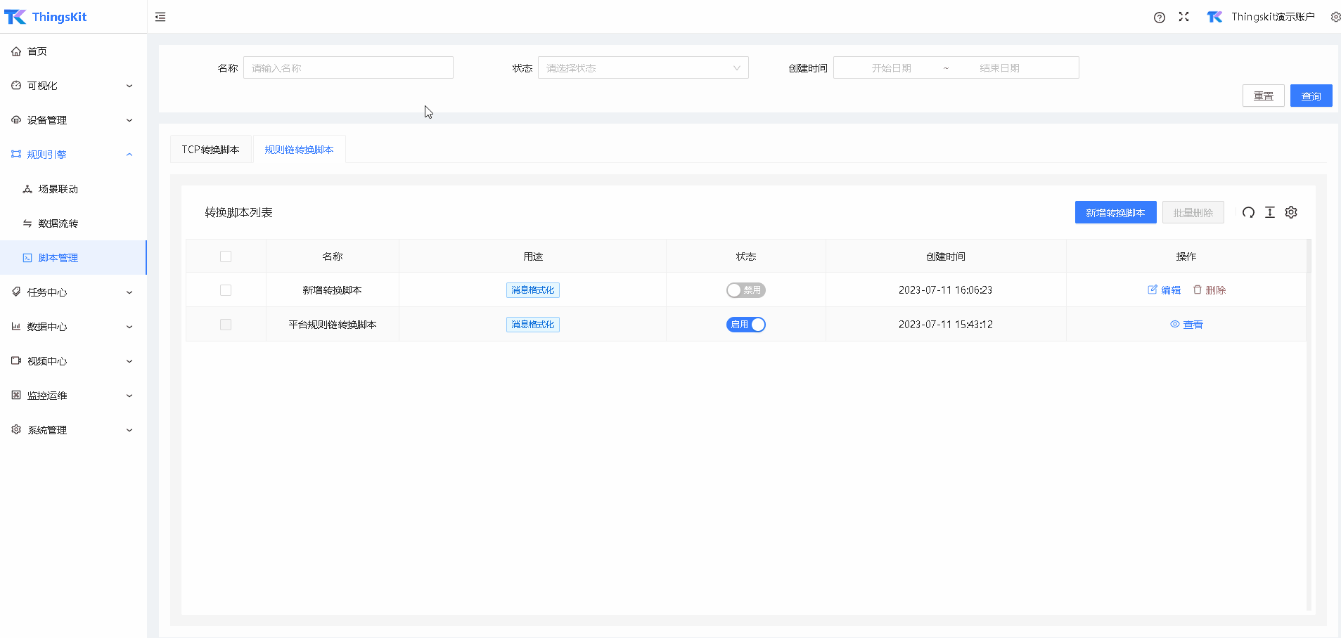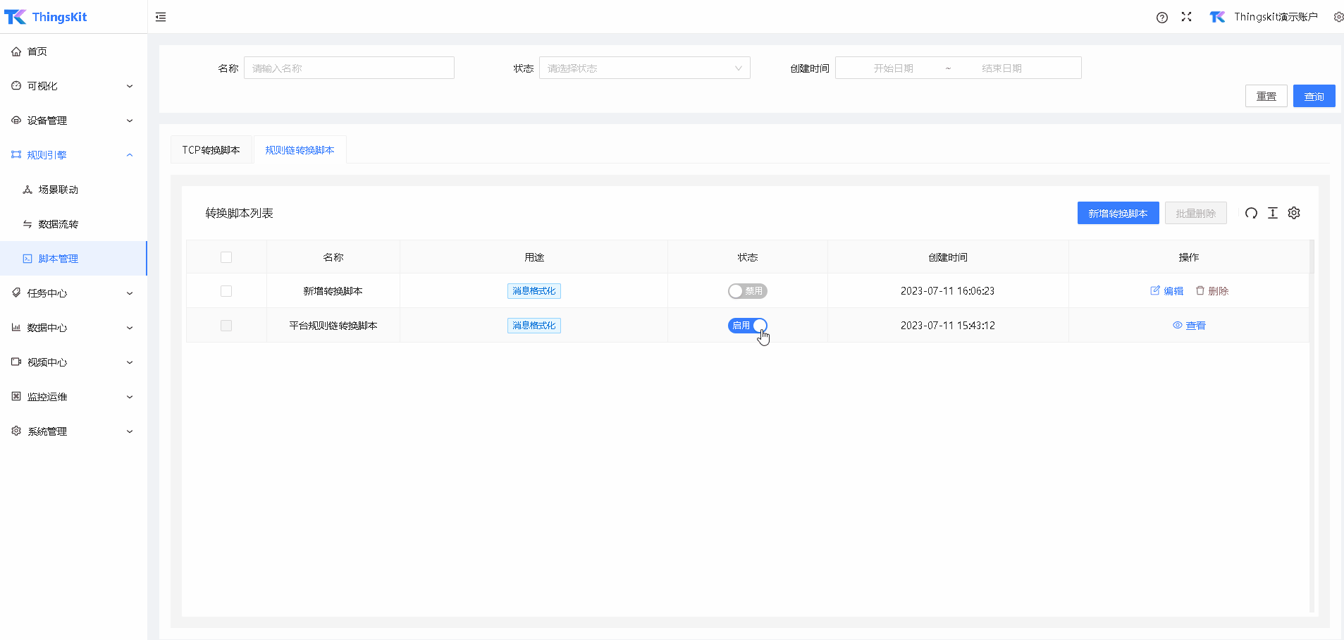 启用规则链转换脚本。