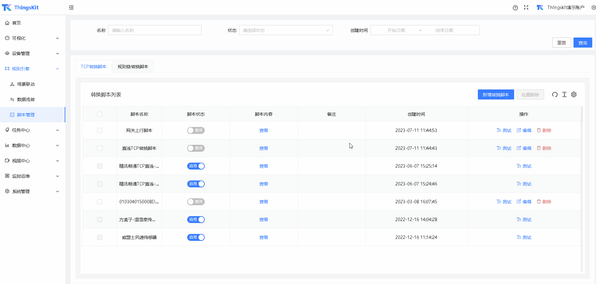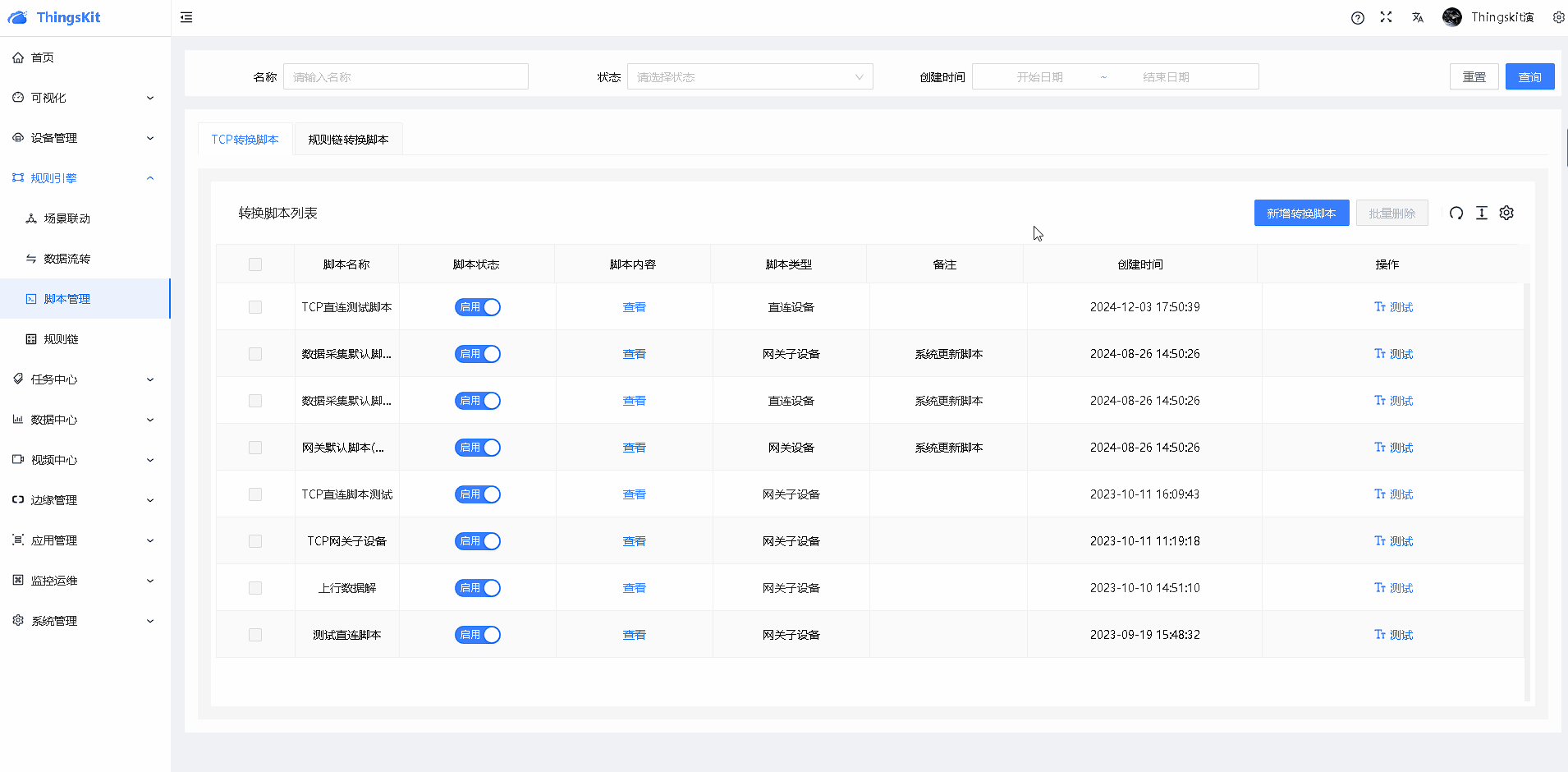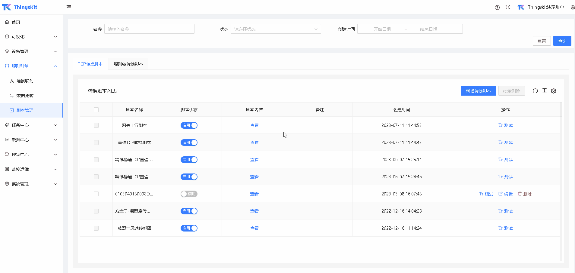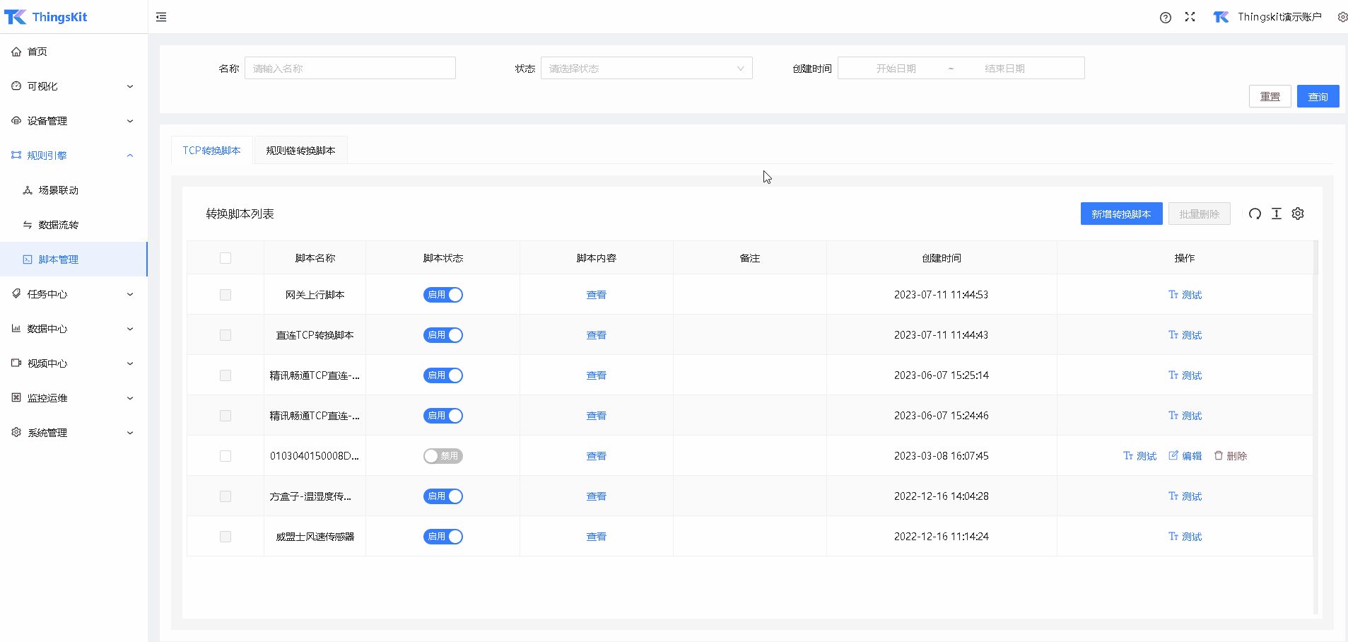 启用规则链转换脚本。