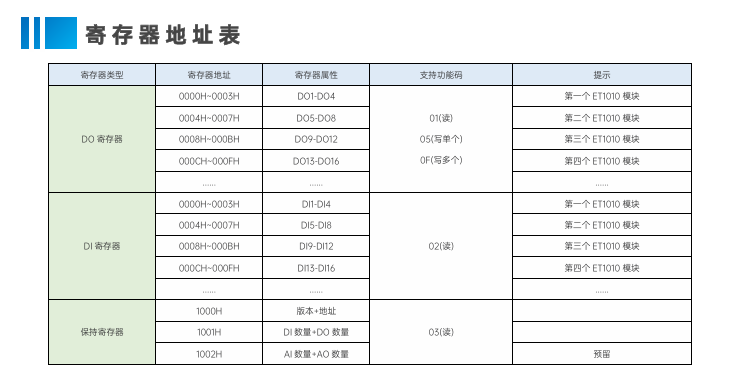ET1010(RS485 IO扩展器):(默认设备地址码为0)