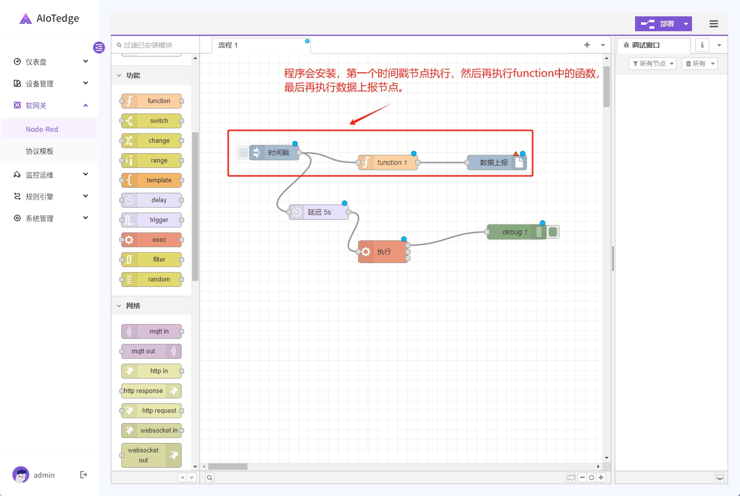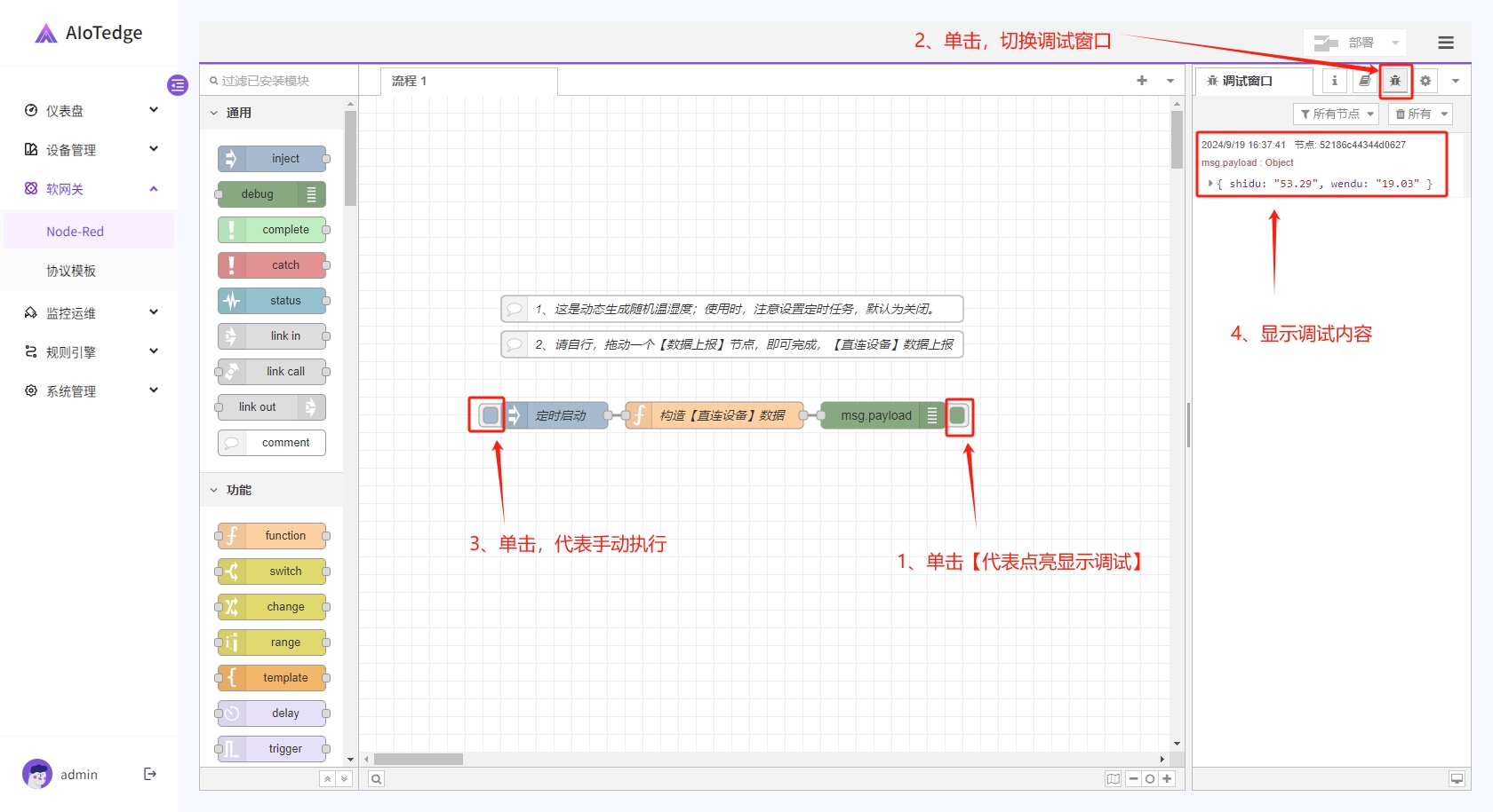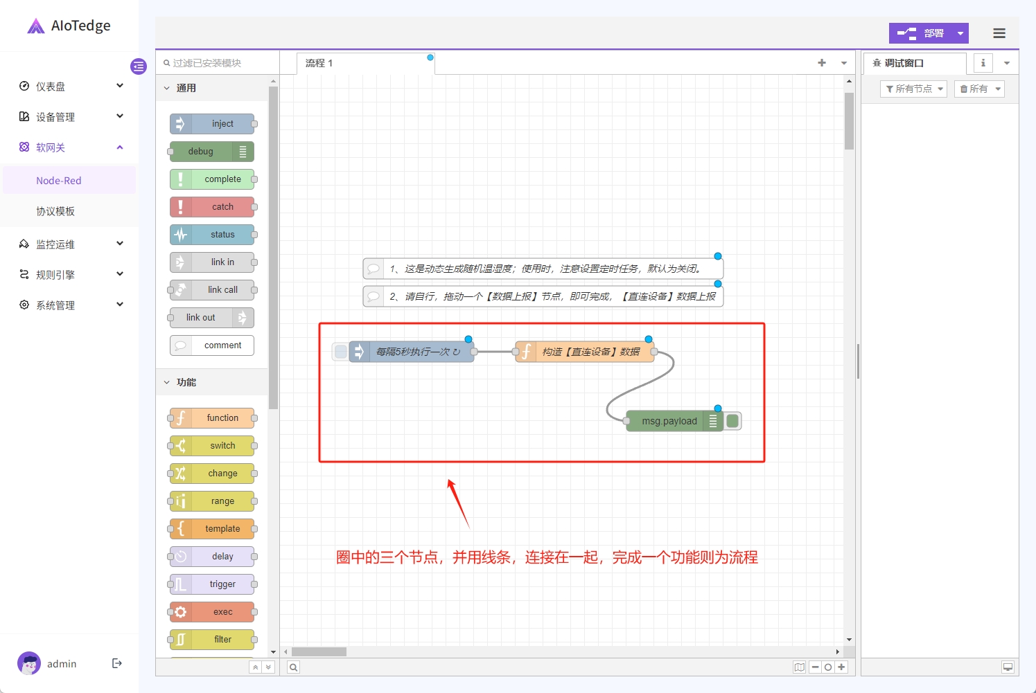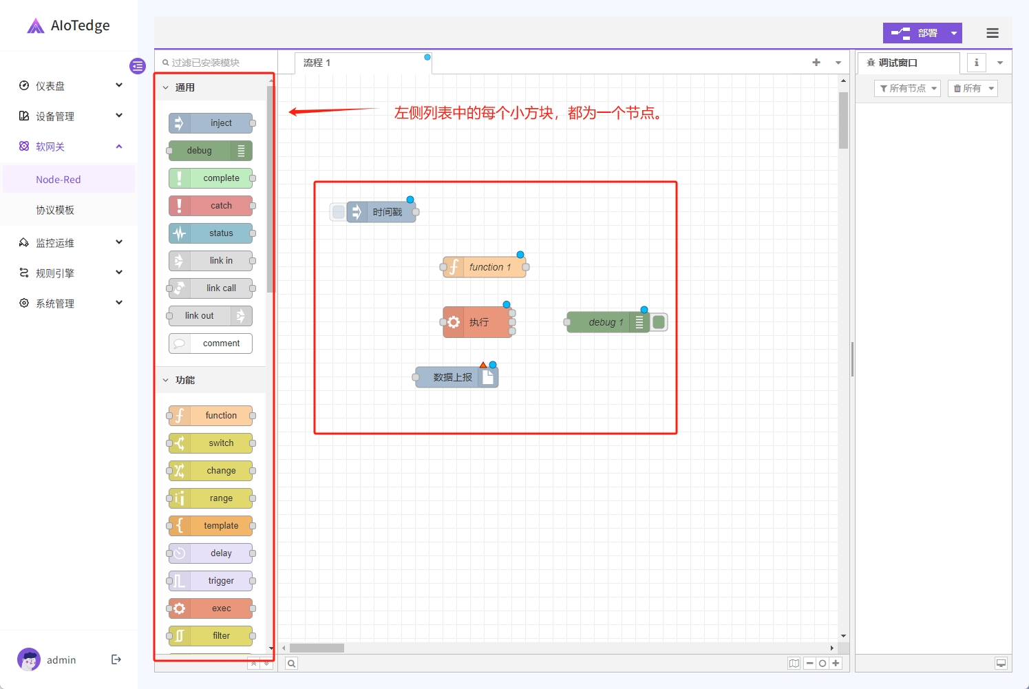 概述:【调试窗口】展示所有【调试节点】接收的信息,便于进行问题诊断和定位。