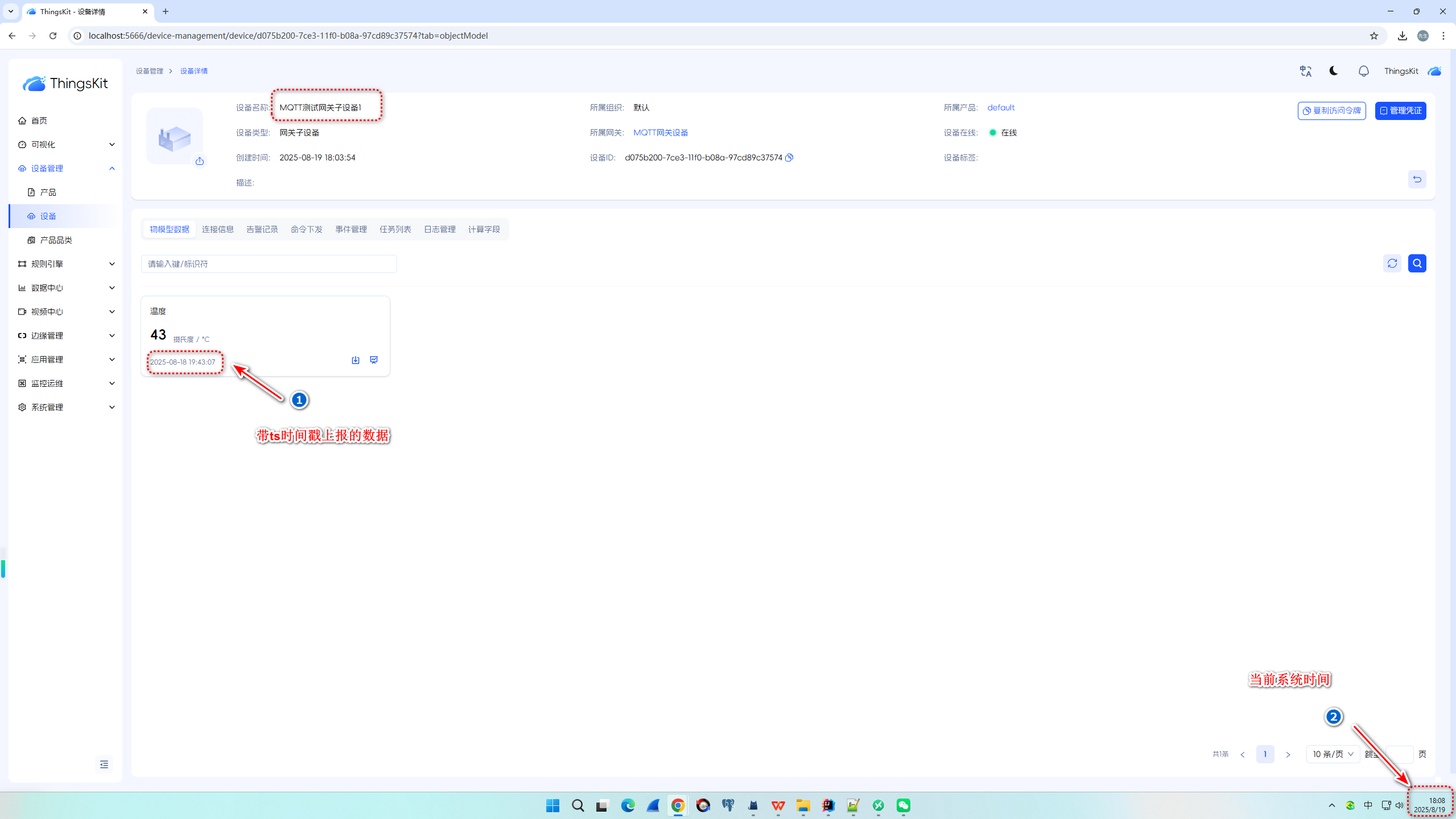2、以下为 网关和网关子设备 示例,需要其他设备示例,请参考 模拟设备连接(直连)