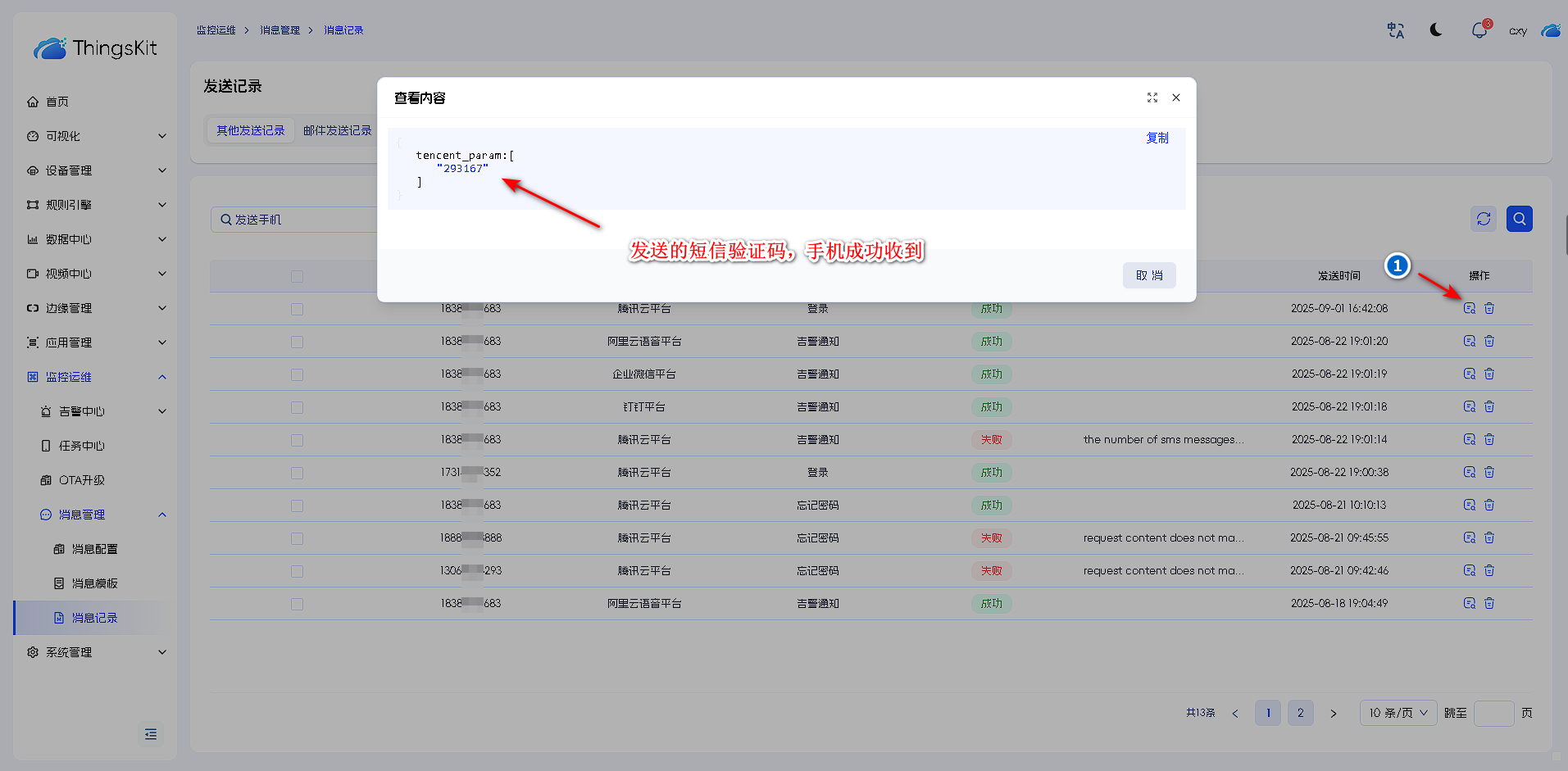 超级管理员中,消息配置和消息模板(登录用途)创建好并启用,此时用手机发送短信验证码的方式登录租户管理员。
