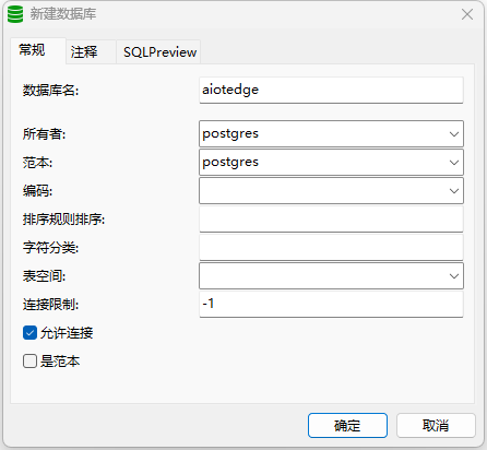 1-1、创建数据库名【aiotedge】