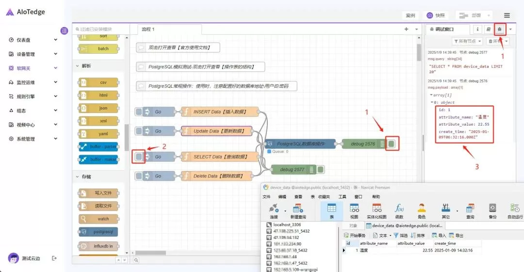Node-RED 是一种强大的基于流的开发工具,专注于实现物联网设备、API 以及在线服务之间的无缝连接。它为用户提供了高效便捷的物联网设备接入方式,能够轻松实现数据的实时读取、精准控制与全面监控。在本文中,我们将以 AIoTedge 物联网边缘计算平台集成的 Node-RED 软网关为例,详细展示如何接入 PostgreSQL 数据库。我们精心编写了一份演示 Flow 流程代码,您只需将其导入到您的 Node-RED 环境中,即可轻松实现功能,无需额外的复杂配置,让您能够快速开启数据库接入之旅。