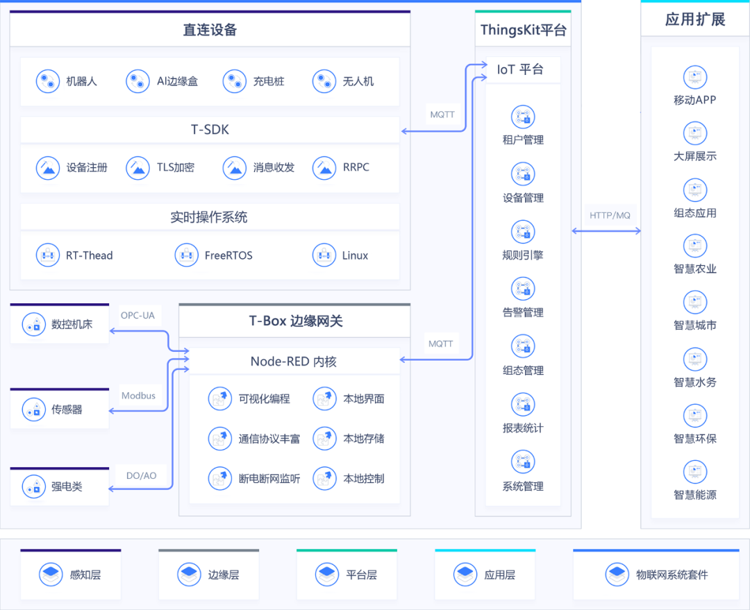 ThingsKit物联网平台是一款面向企业和组织的物联网解决方案,它提供了完整的物联网应用开发、设备接入、数据处理、监控管理等全套物联网服务。基于openEuler操作系统,ThingsKit物联网平台具备高可靠性、高安全性和易用性的优点。同时,它还支持云端和边缘端部署,可以满足不同场景下的物联网需求。