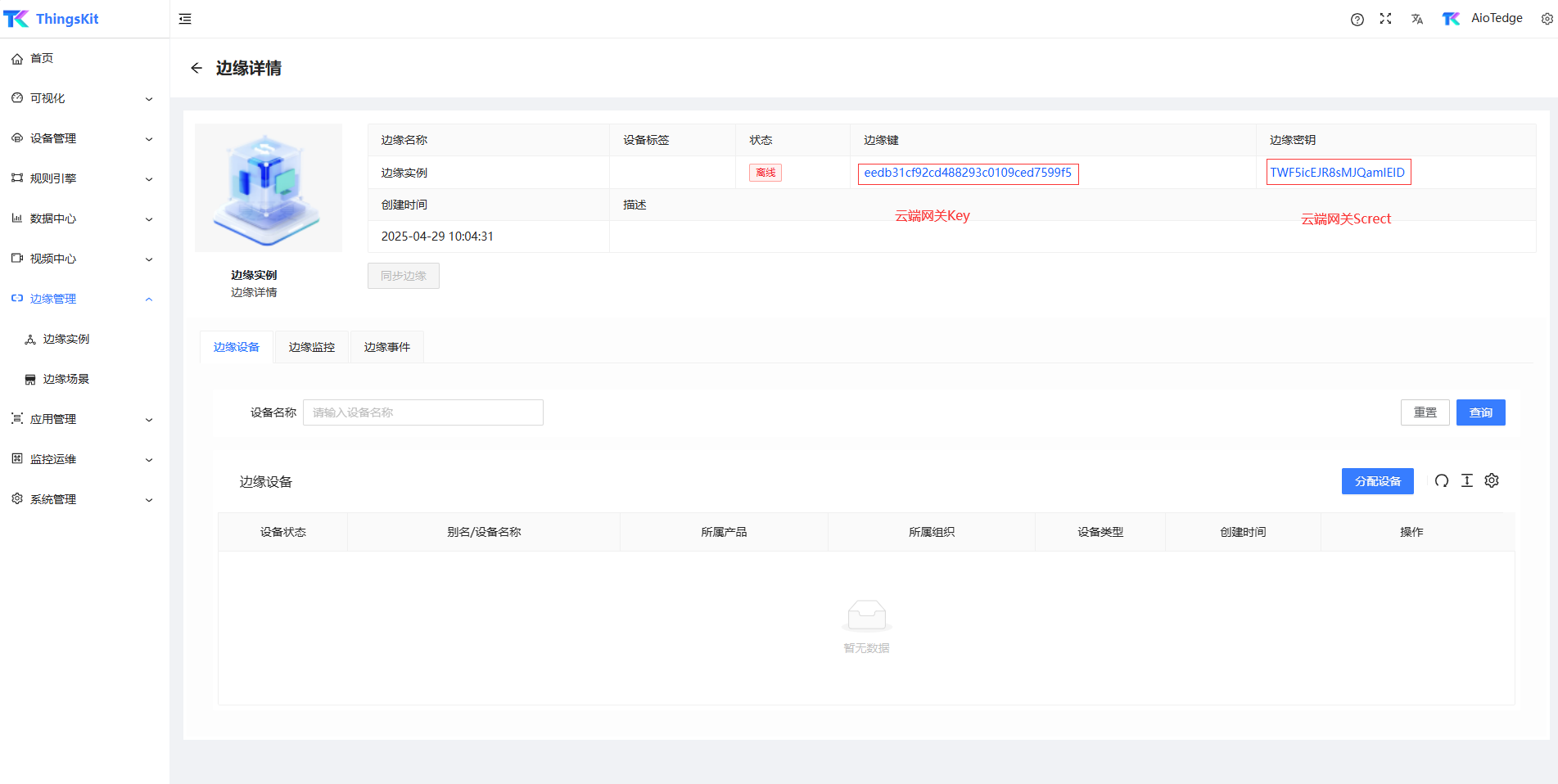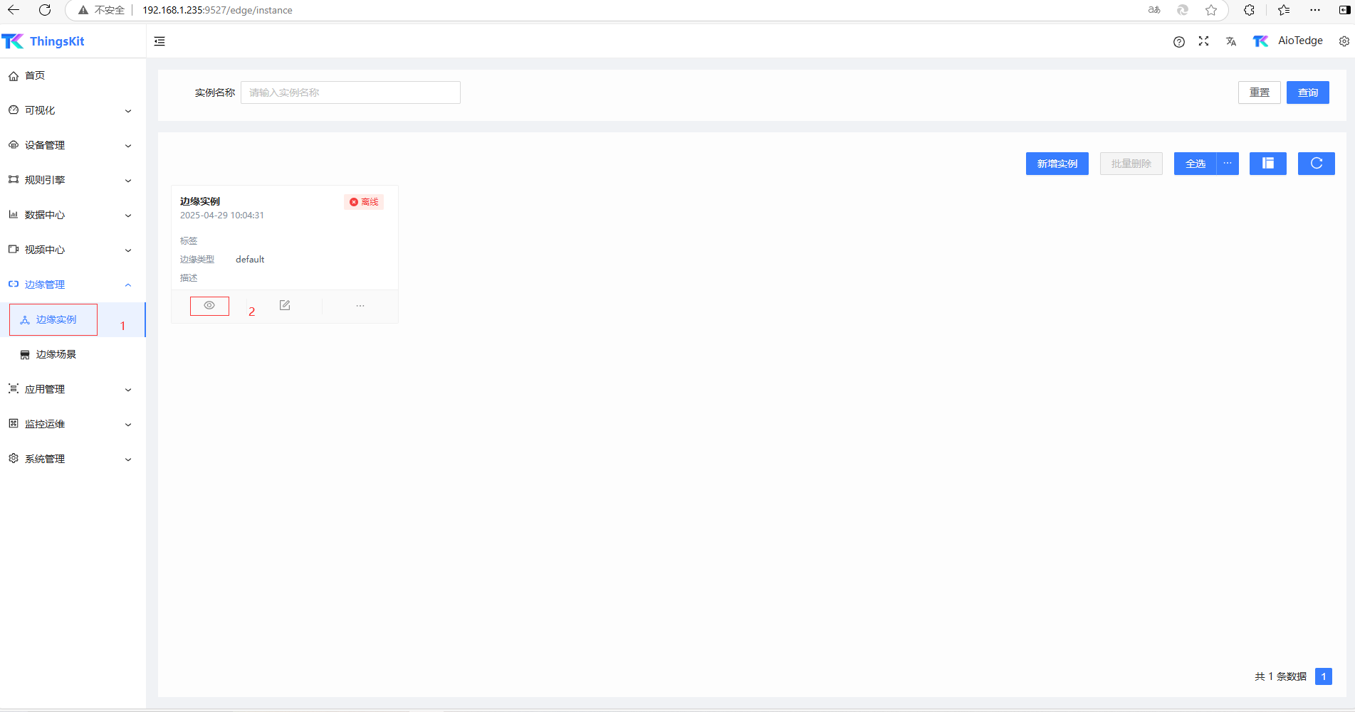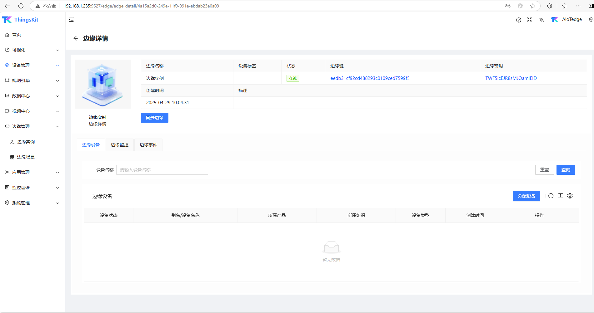 💡 提示 :以下为接入云台登录。边缘实例处于在线状态。