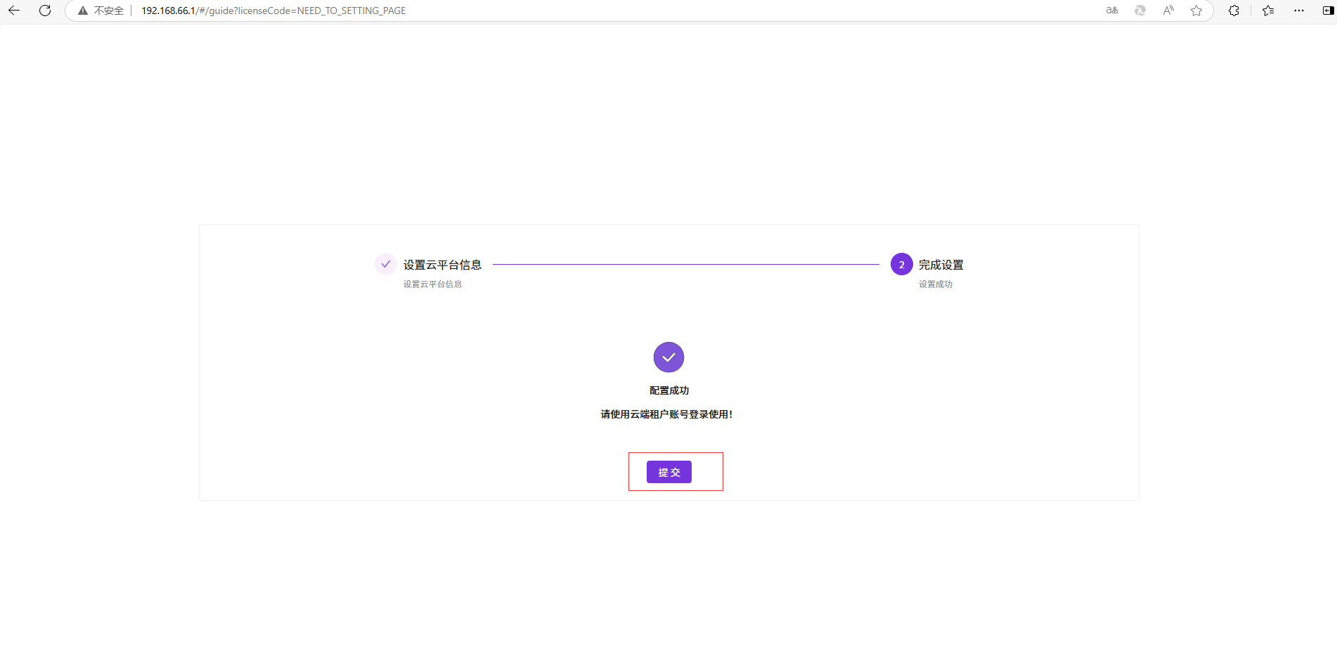 配置成功后点击提交进入登录界面