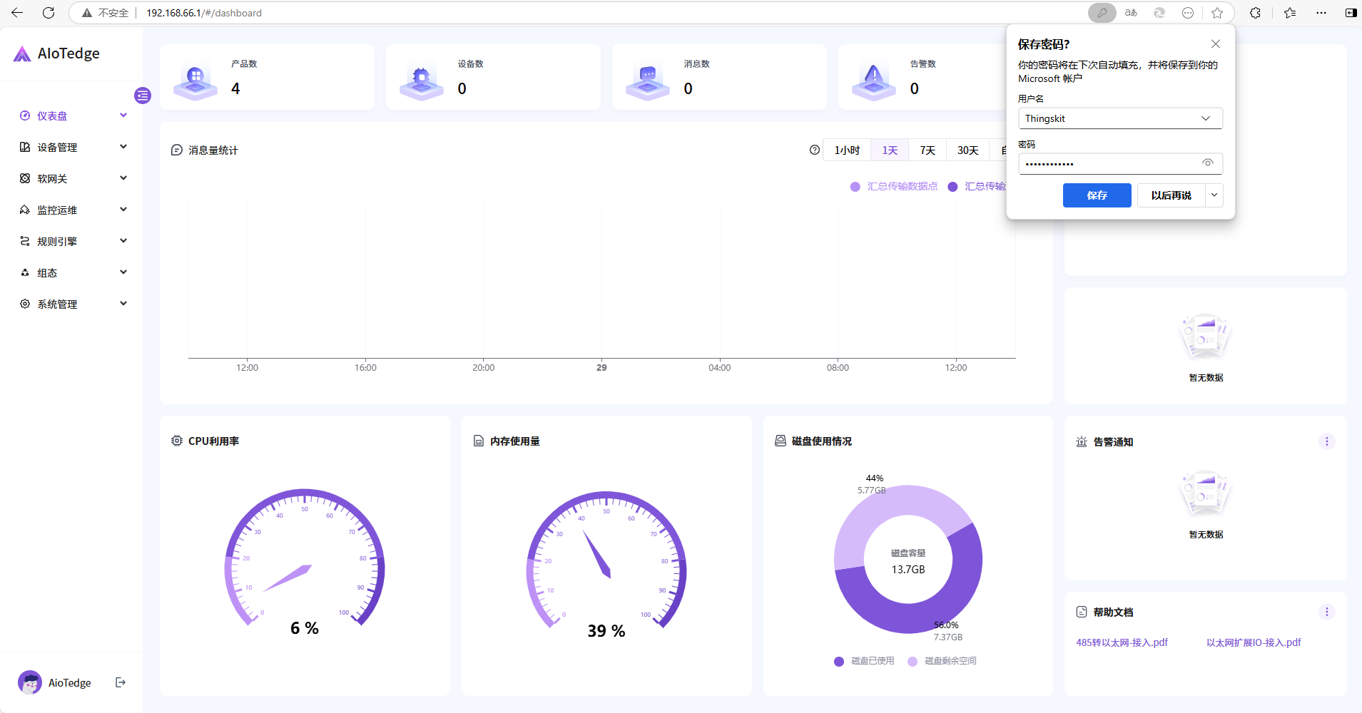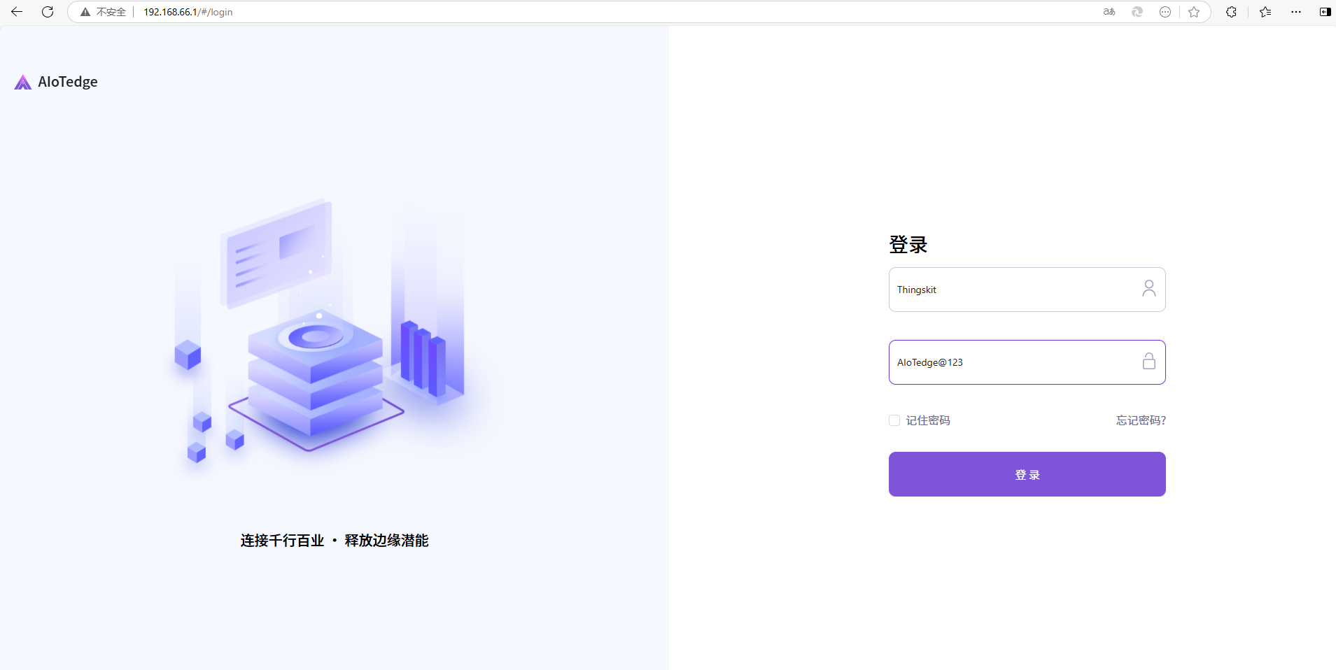 利用云端租户账号登录ThingsKit Edge平台:
