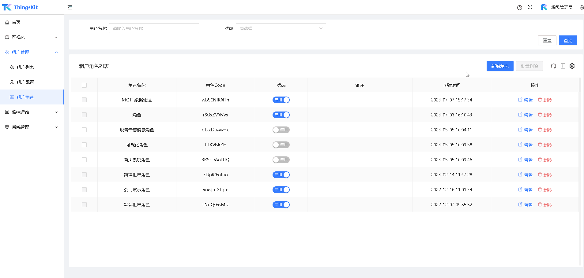 租户在使用该角色时,无法进行删除。