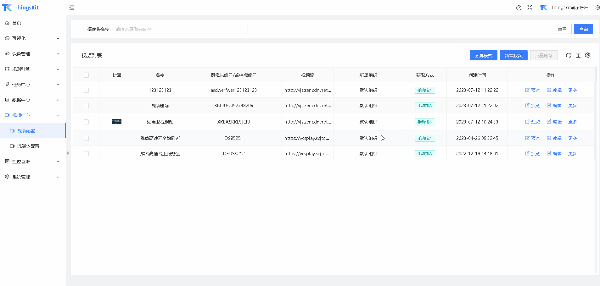 支持摄像头视频流管理,如:接入自建流媒体服务器或海康、大华等品牌的摄像头到平台进行统一管理。