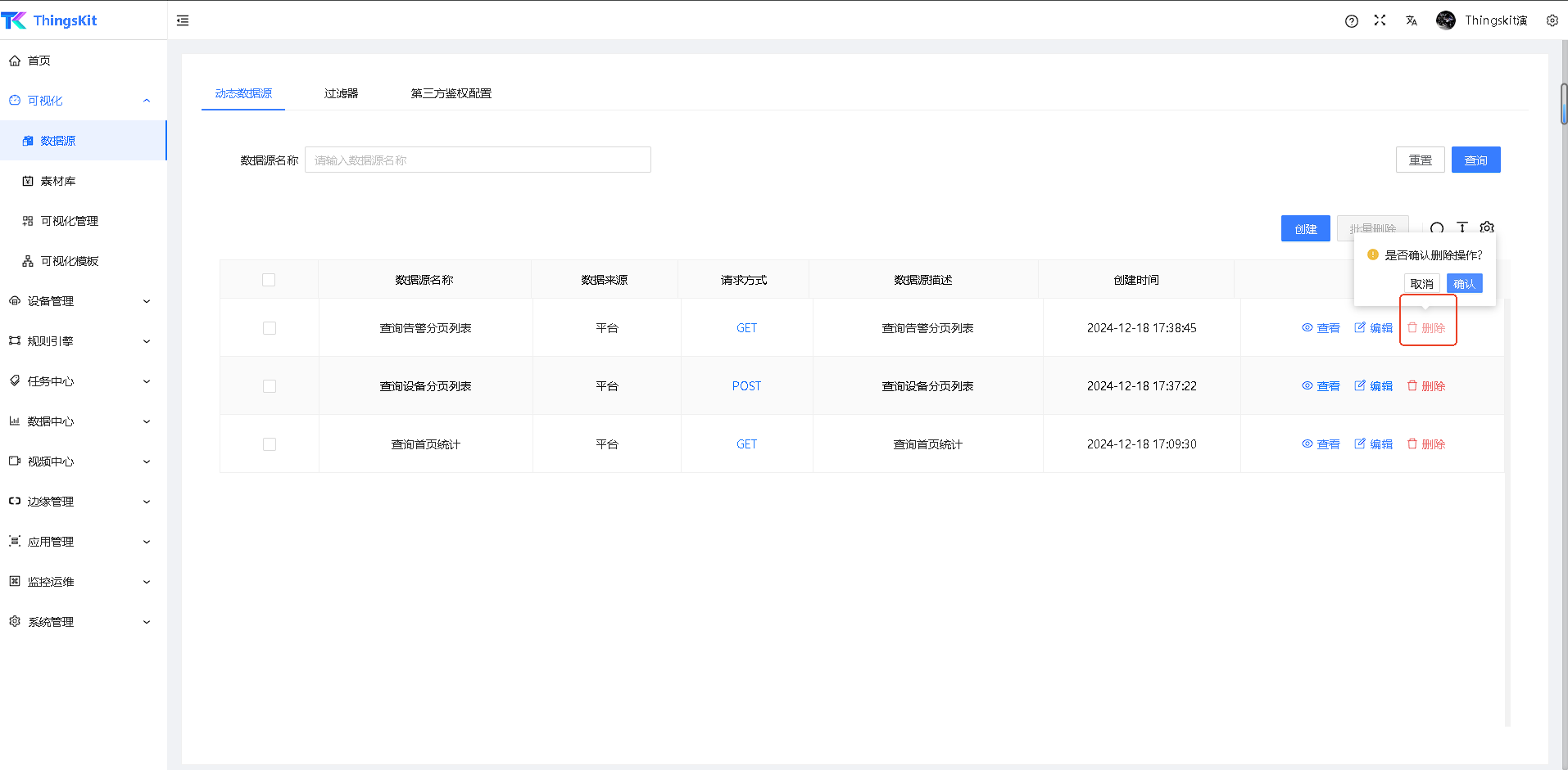 进入动态数据源功能,点击创建,填入必填项参数,进行接口测试,获取数据后点击确认新增即可。