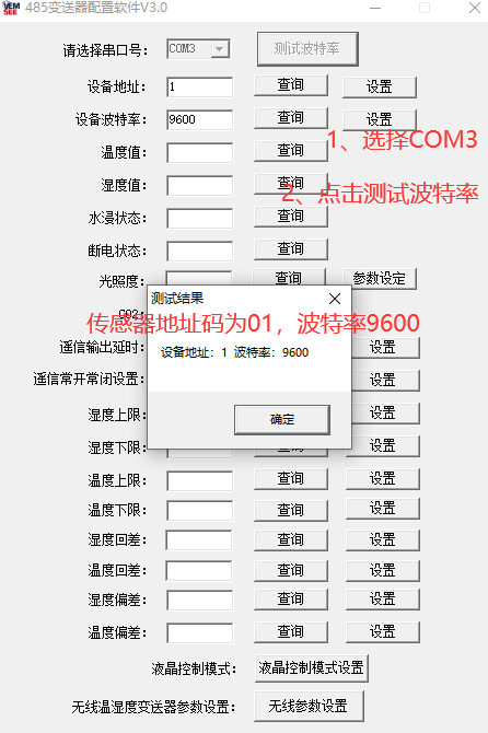 1-3-2、通过软件读取并配置传感器地址码及其波特率