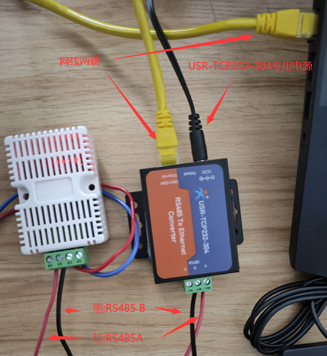 1-4-1、USR-TCP232-304连接电脑设备及其传感器接线图: