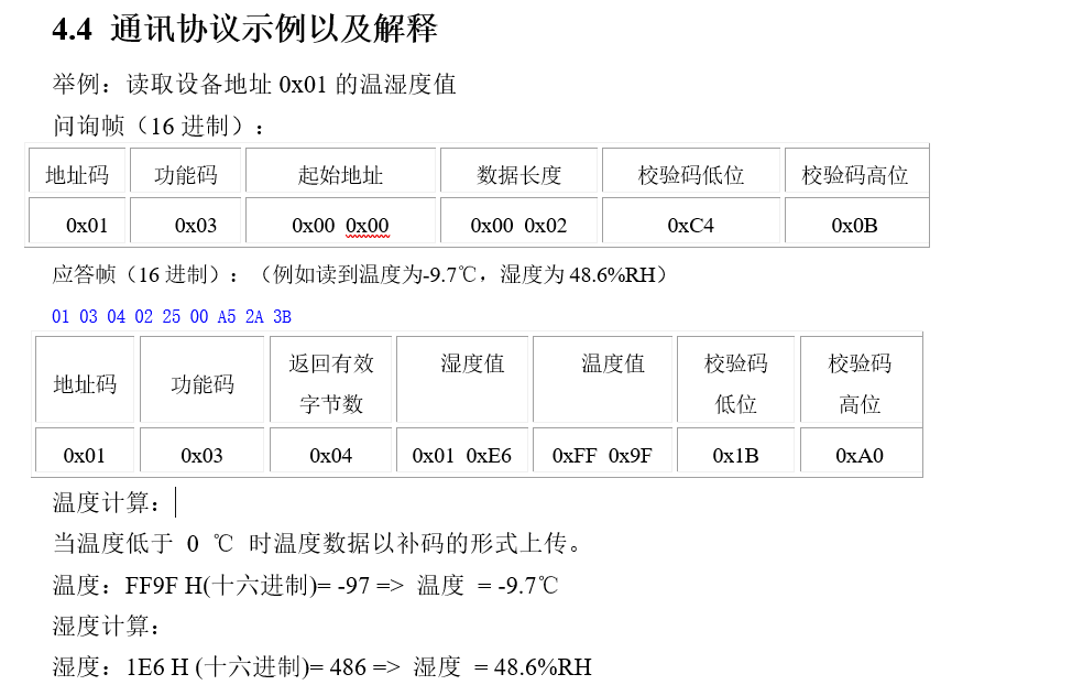 温湿度传感器中温度湿度寄存器(保持寄存器)地址: