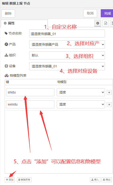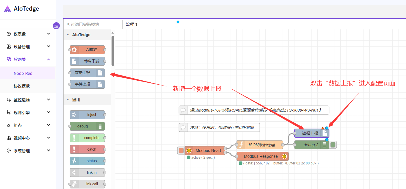 2-3、通过案例导入配置,接入USR-TCP232-304并获取传感器信息
