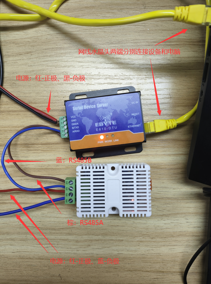 1-4-1、EBYTE-E810-DTU_485-V2.0连接电脑设备及其传感器接线图: