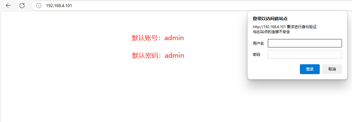 1-4-3、配置完成后打开浏览器输入设备默认IP:192.168.4.101 访问EBYTE-E810-DTU_485-V2.0设备后台管理界面