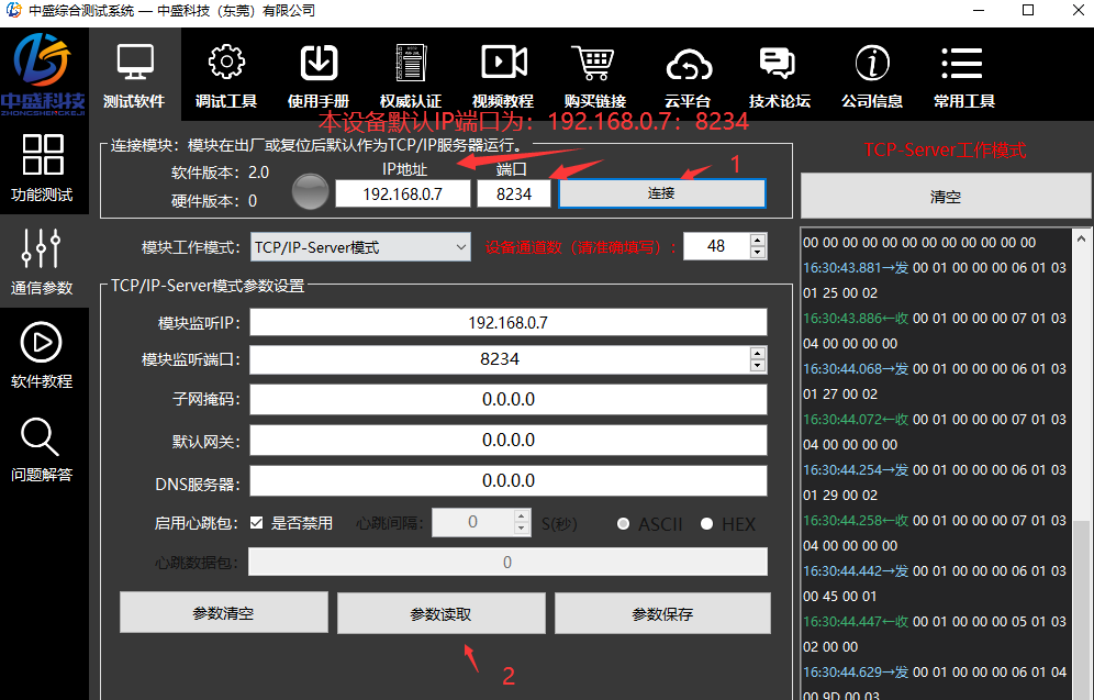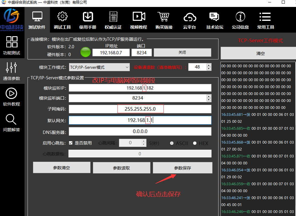 读取完参数后修改IP、端口子网掩码、网关等信息:
