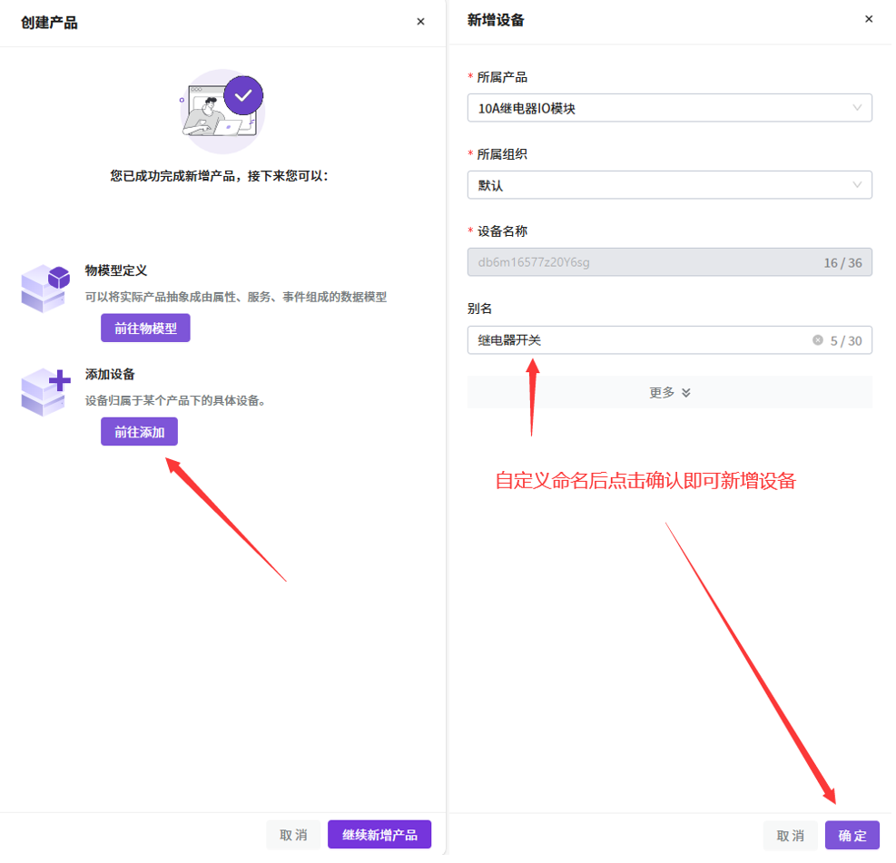 2-1、创建继电器产品及继电器设备