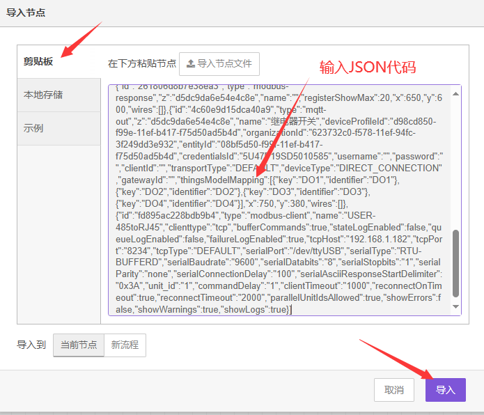 将上述JSON代码按下列步骤导入: