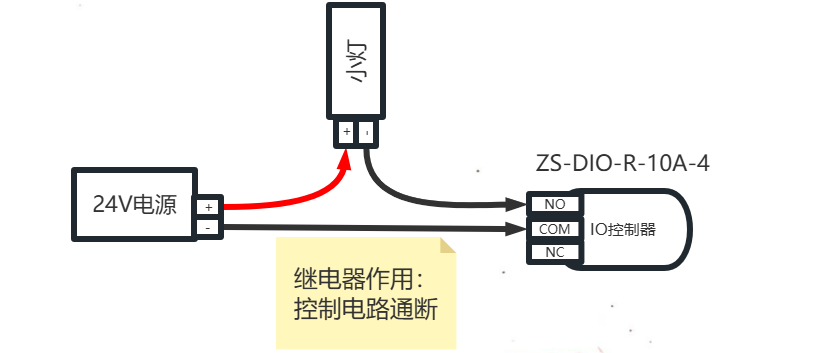 1-2-1、ZS-DIO-R-10A-4连接电脑设备接线图: