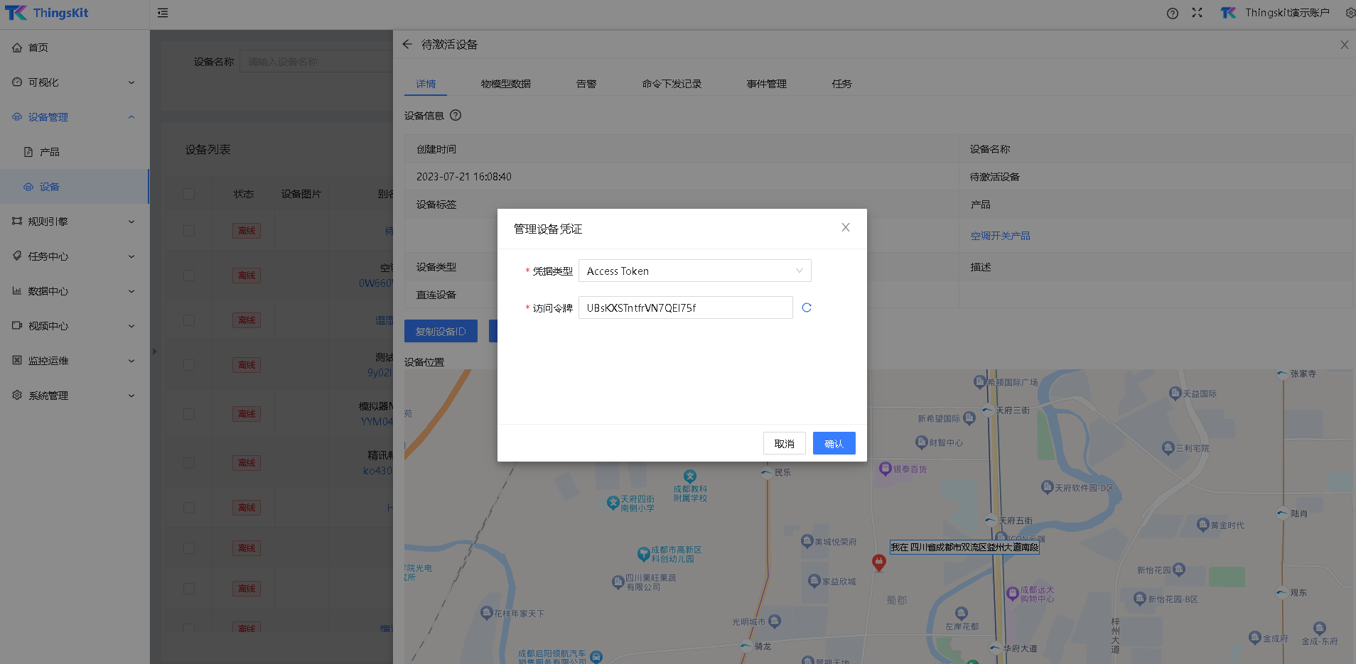 设备普通访问凭证,可自定义和随机刷新。设备凭证具有唯一性,不可重复。
