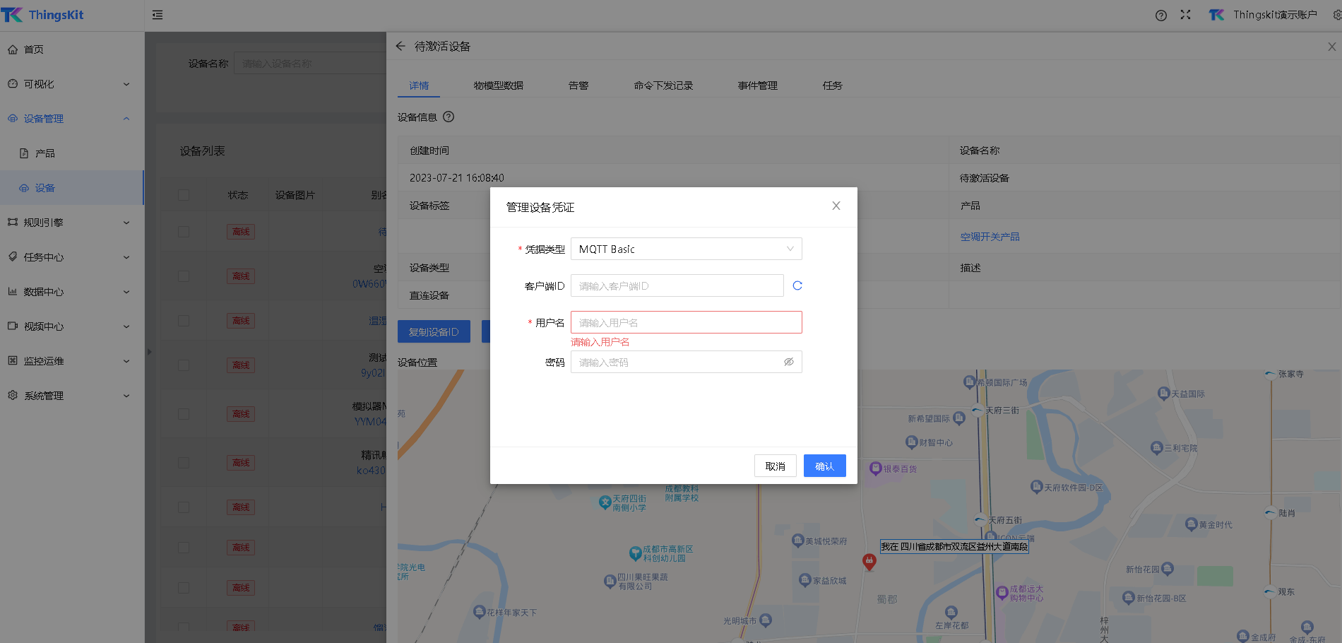 要注意的是,ThingsKit对同一个设备身份信息只支持一个MQTT连接,也就是说,如果在两个或多个物理设备中,使用同样的username/password身份信息连接平台,即便clientid使用不同的字符串,平台仍然将这些连接视为同一个设备,这会导致后一个设备连接成功后会顶掉之前的设备连接。