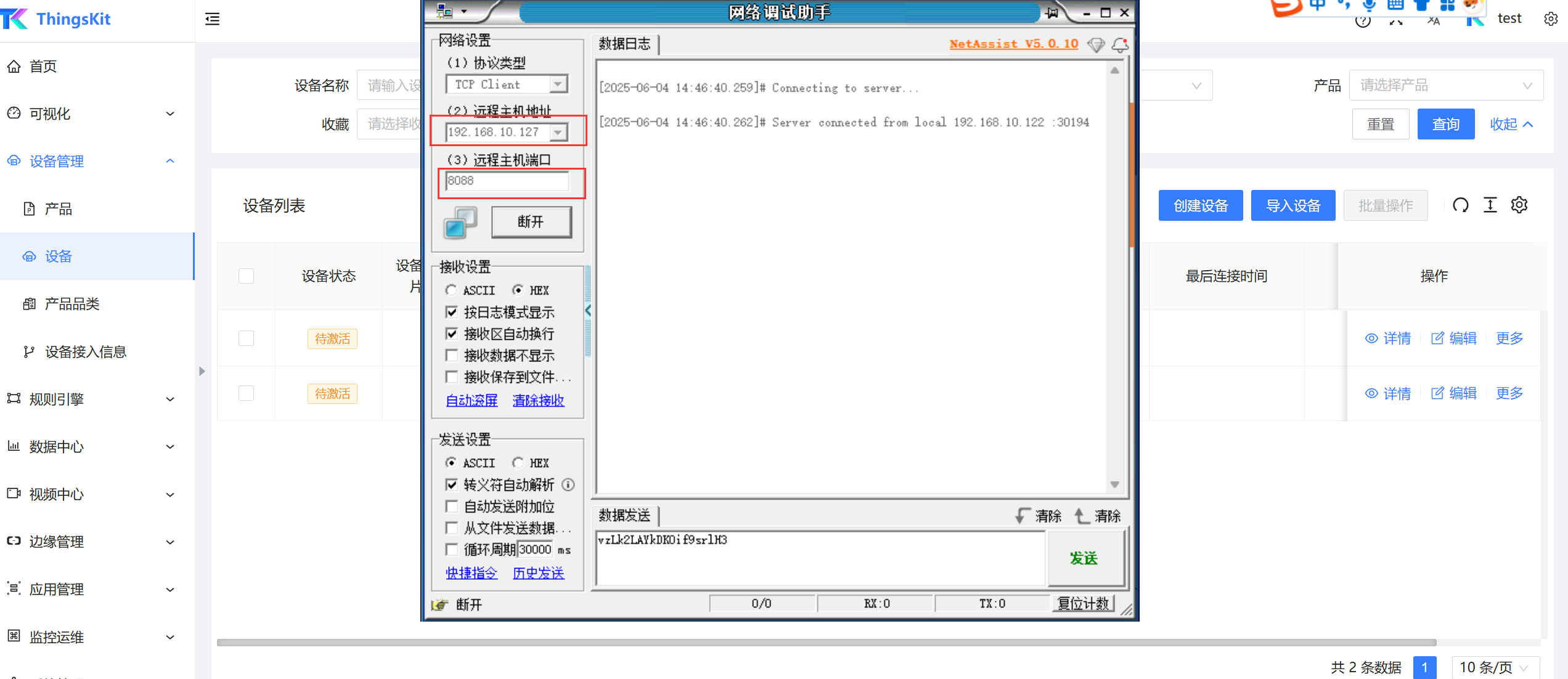 模拟TCP网关设备接入