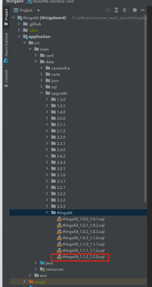 在后台代码找到application/src/main/data/upgrade/thingskit目录,使用当前版本开头的sql进行升级。