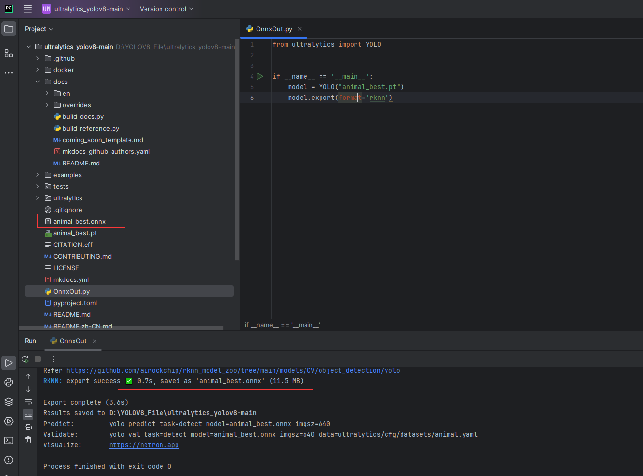 运行代码后会生成animal_best.onnx