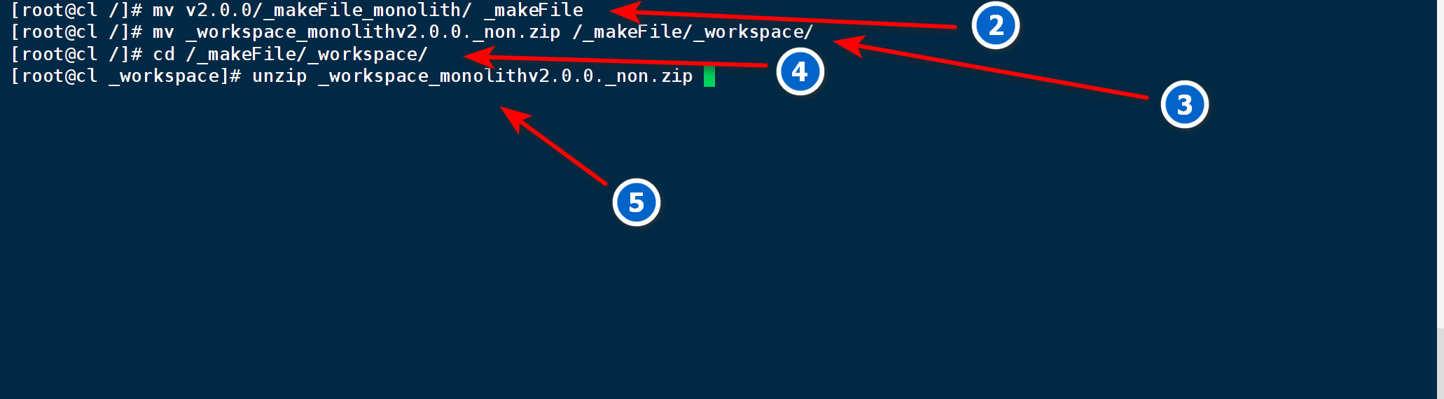 unzip _workspace_monolithv2.0.0._non.zip				#此处仅为单机部署基础版文件