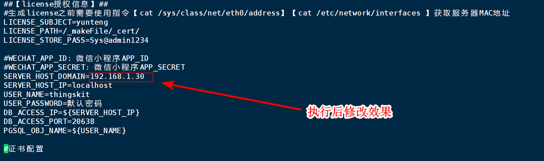 sed -i 's/平台访问外网IP或域名/XXX/g' monolith.env