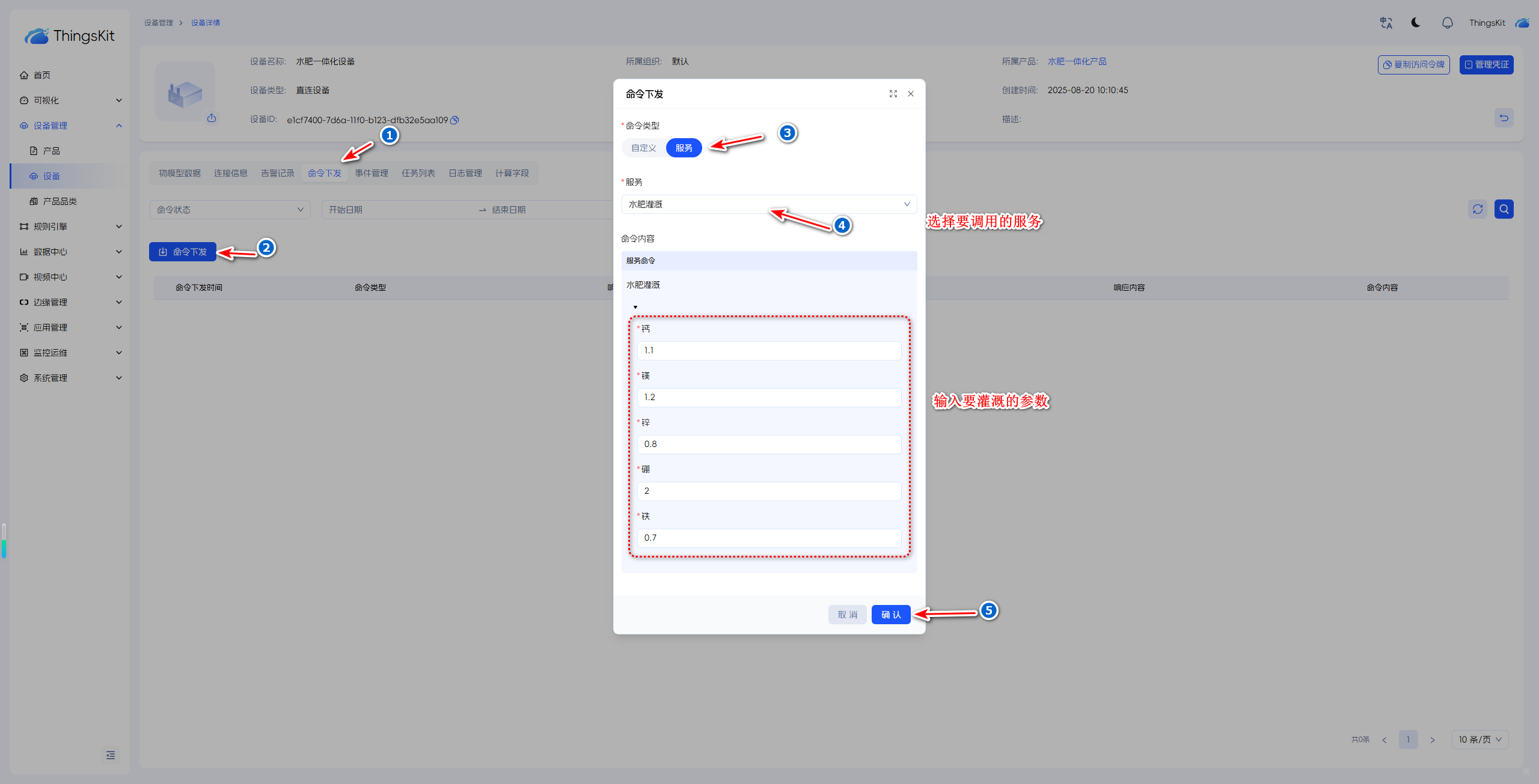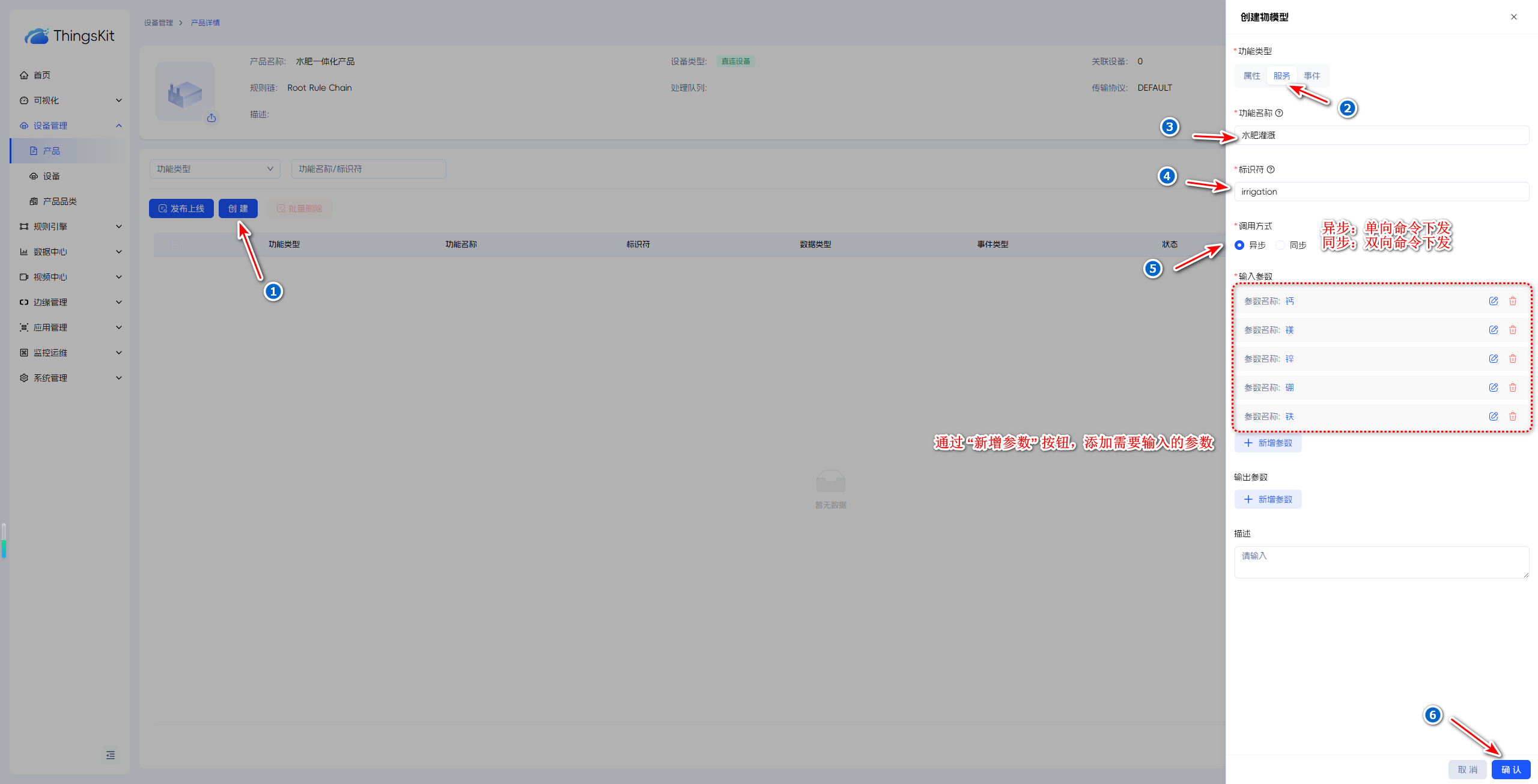 服务调用需要先创建好对应的设备,并将设备上线到平台,请参考创建直连或网关设备模拟设备连接(直连)