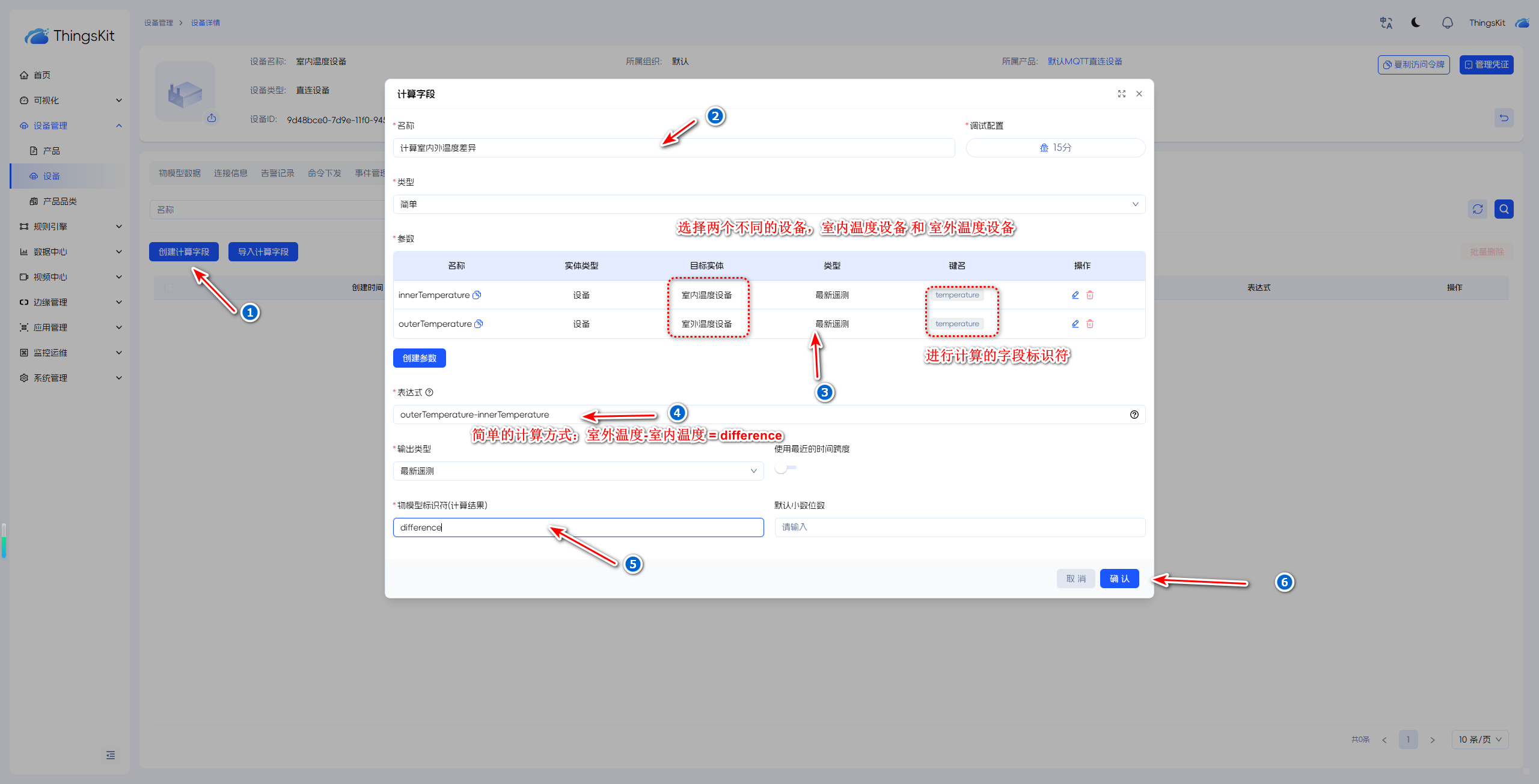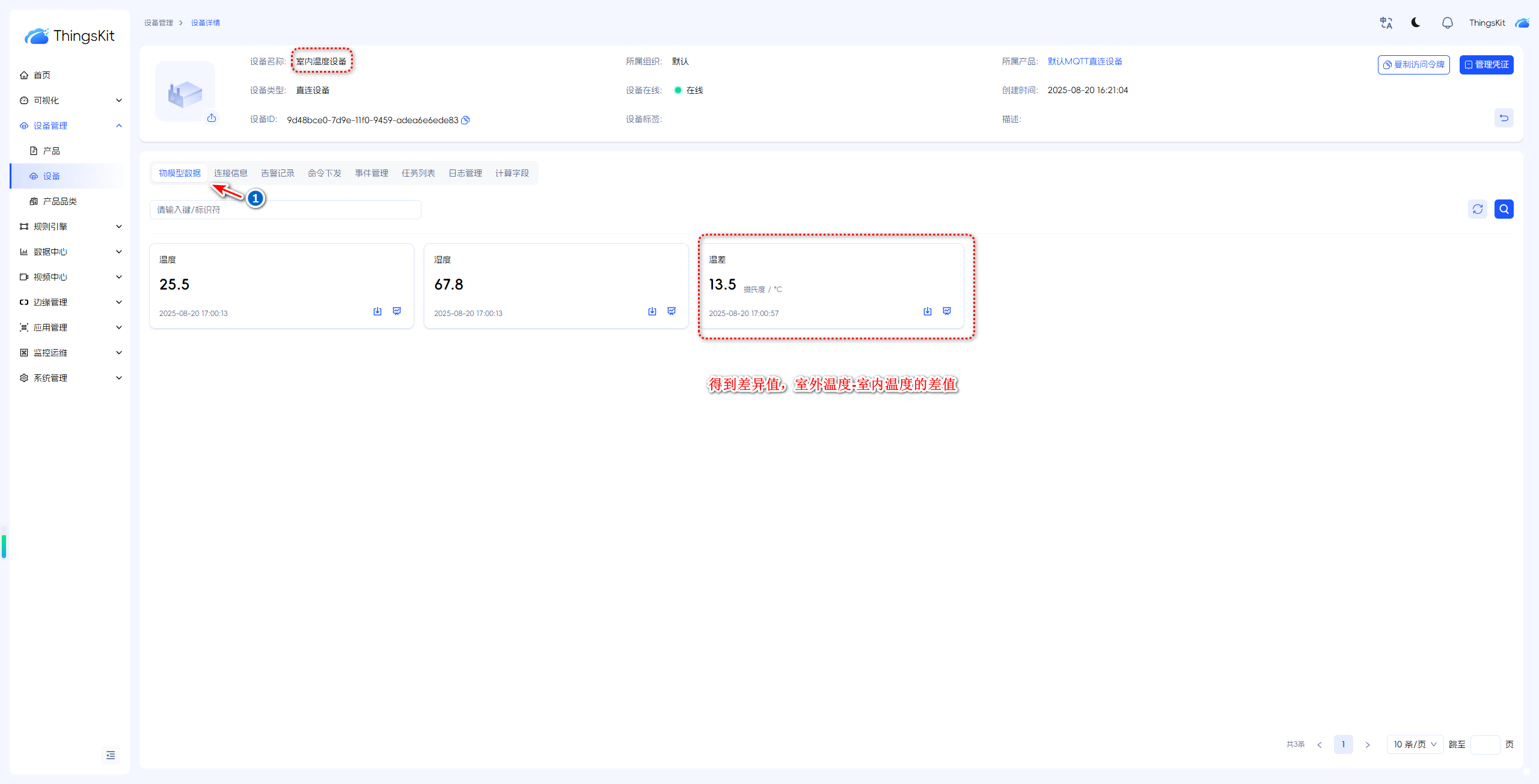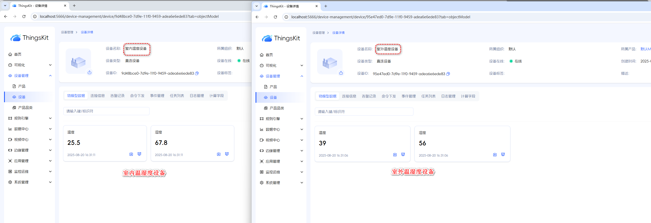 先创建两个设备,一个室内设备一个室外设备,如需了解详情请通过创建直连或网关设备查看
