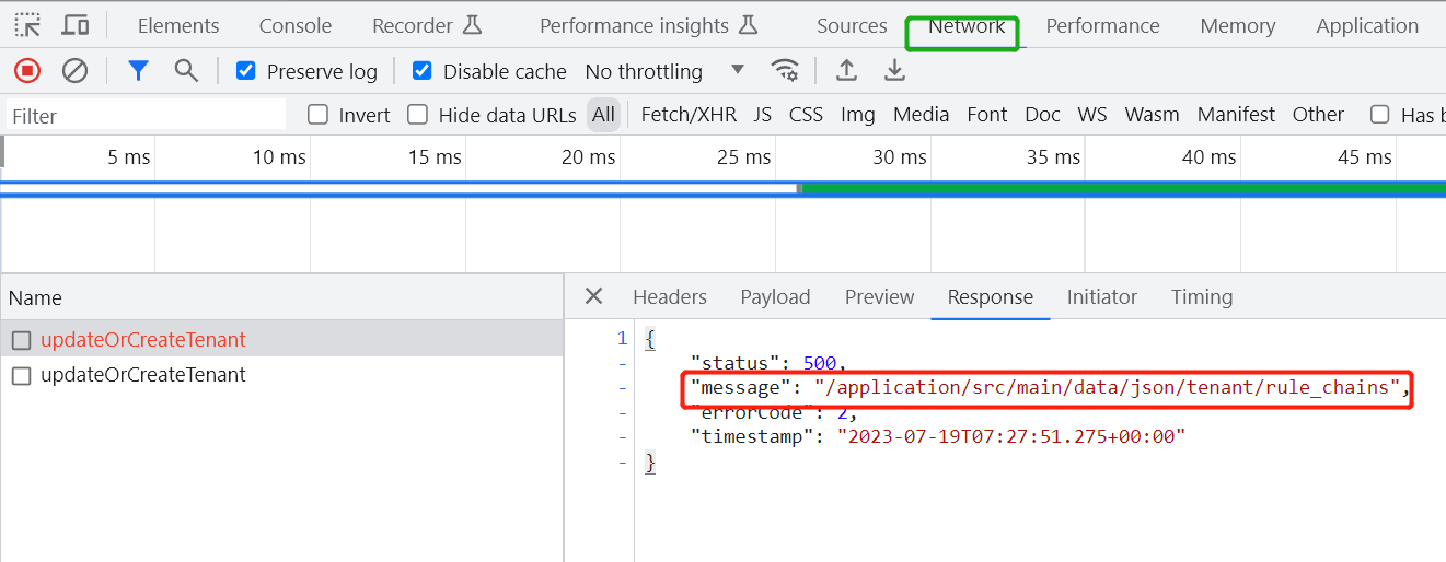 为租户创建默认规则链的文件不存在。有2种解决方案。