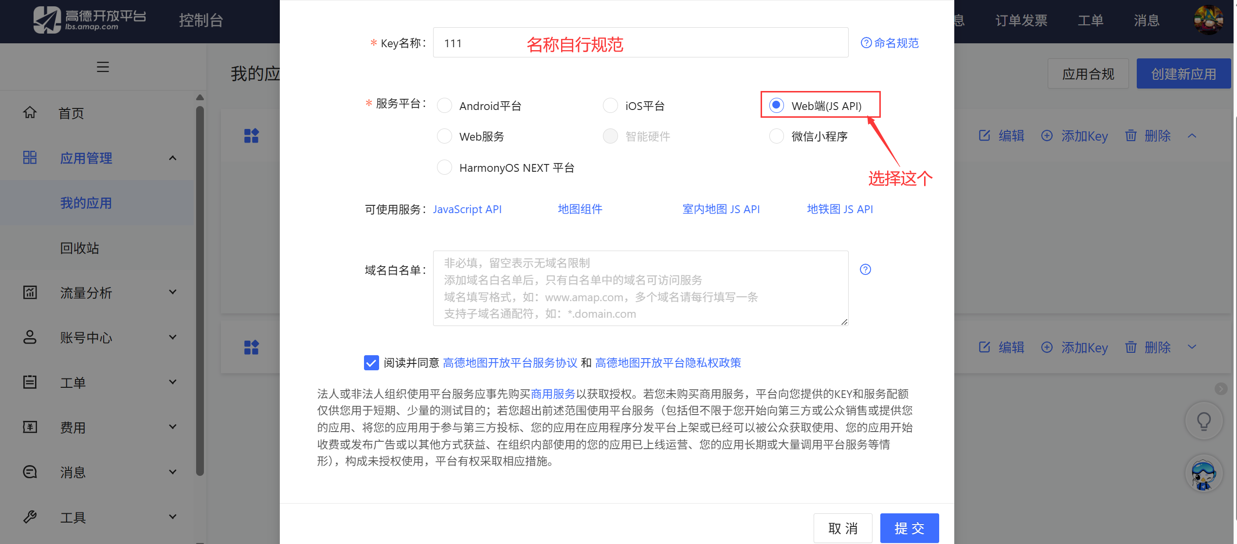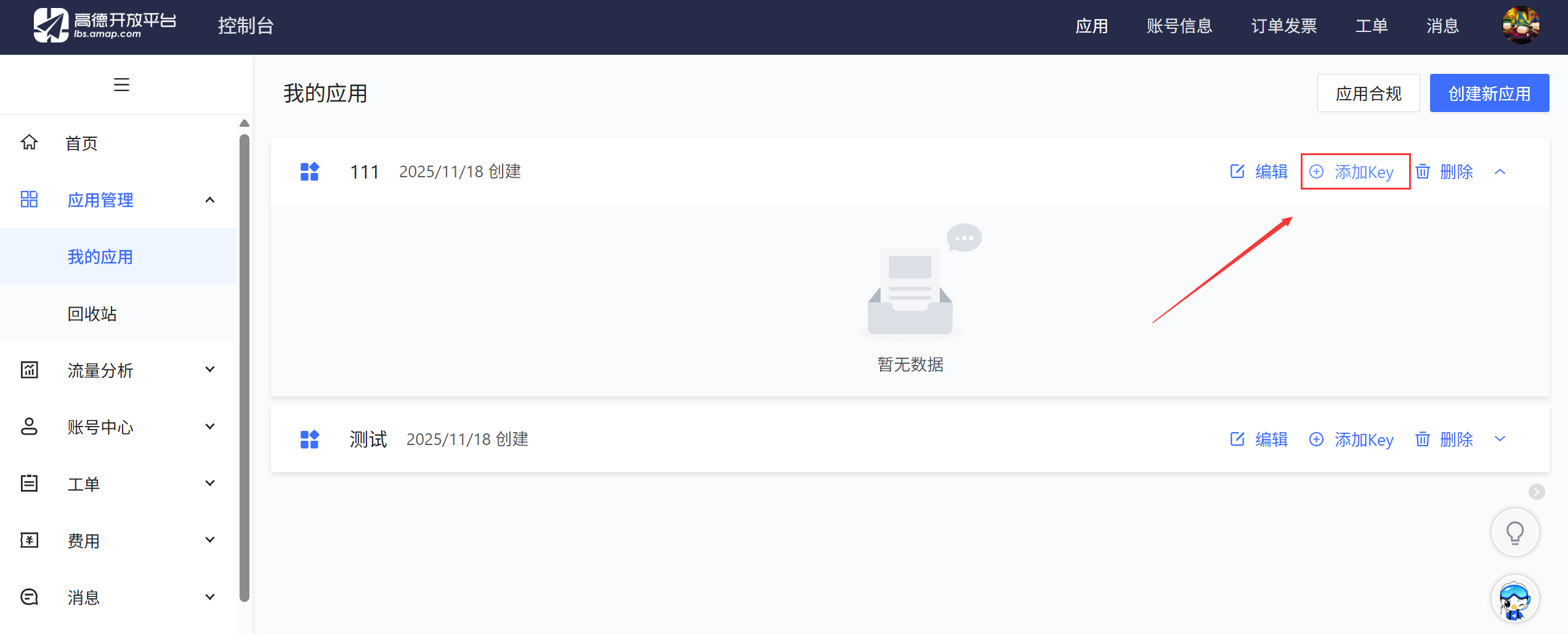 平台不提供地图接口配置,需要自行配置高德地图api接口配置。