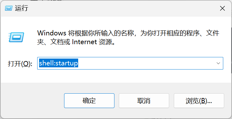 首先在运行界面上执行命令打开启动文件夹(运行界面可用win+r呼出):