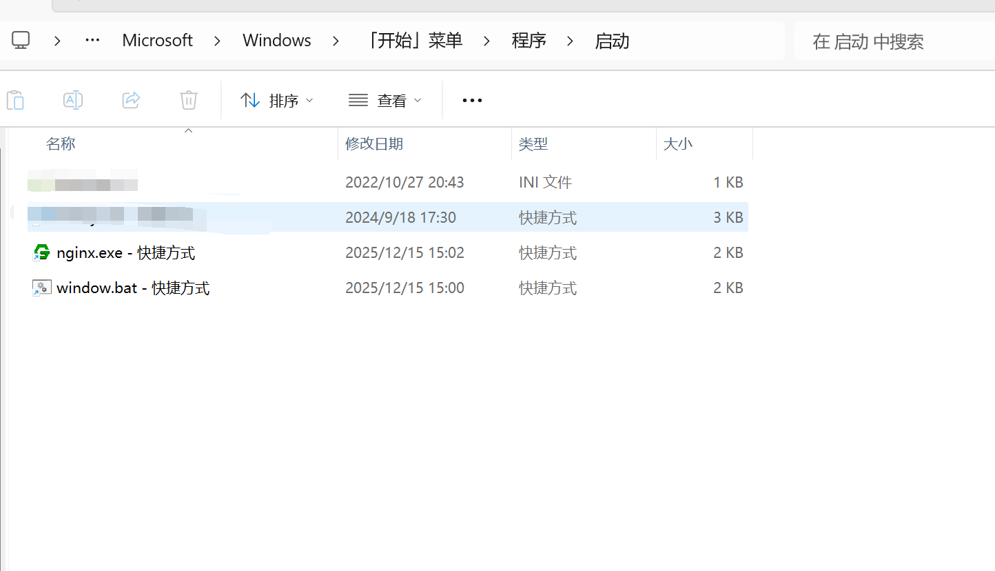 打开启动文件夹后,将nginx执行文件和window.bat脚本的两个快捷方式复制到该目录,重启电脑后即可自动启动平台: