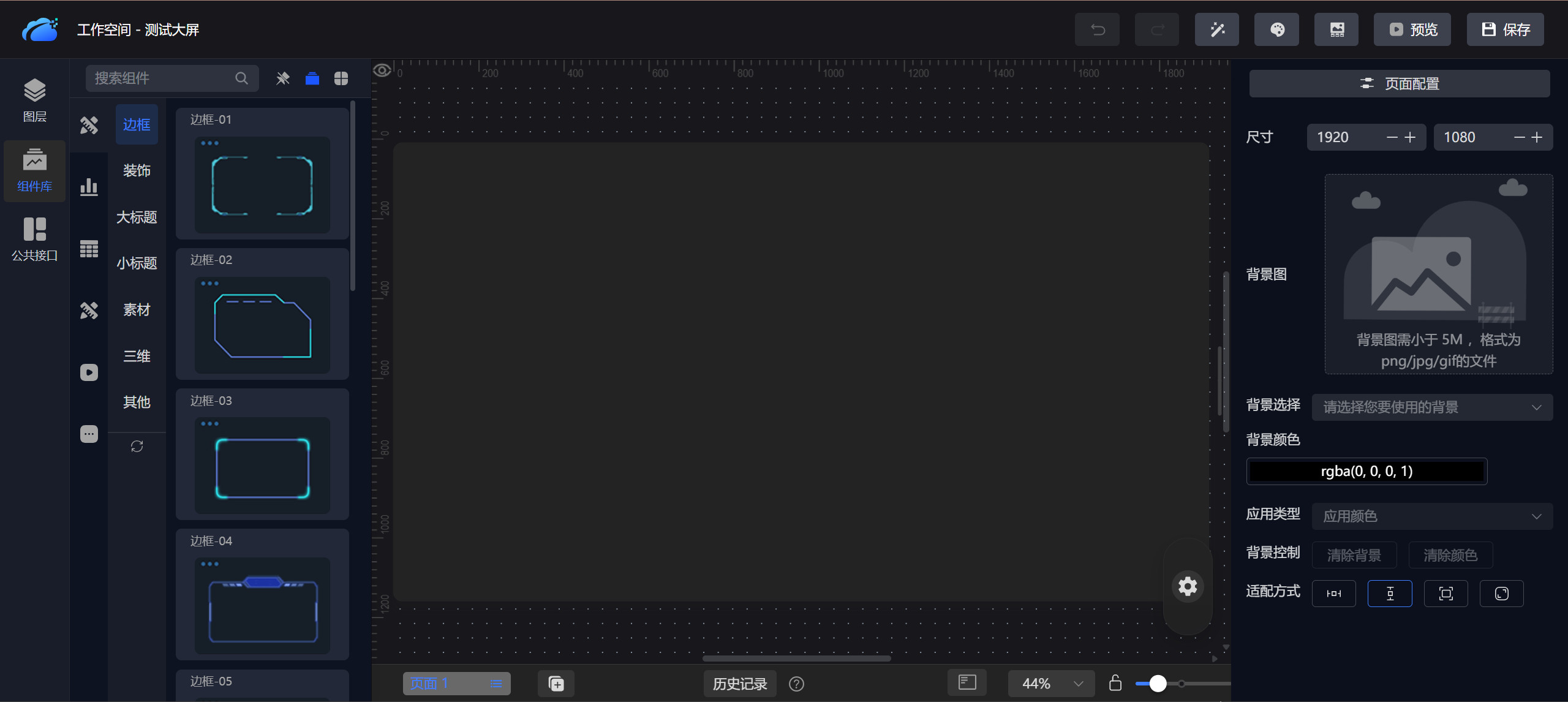 接下来,点击大屏设计,即可进入设计页面: