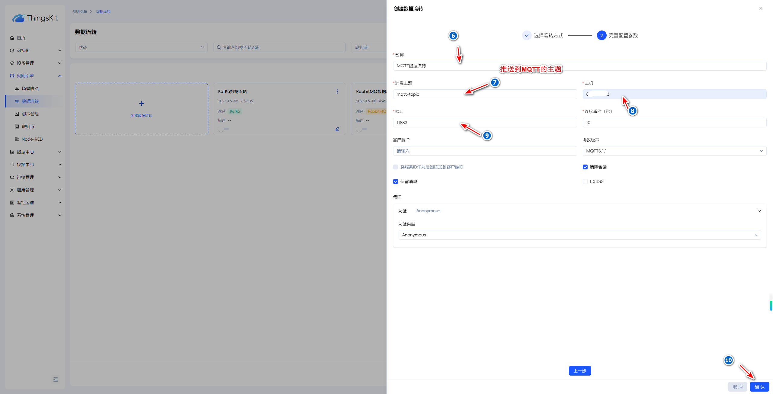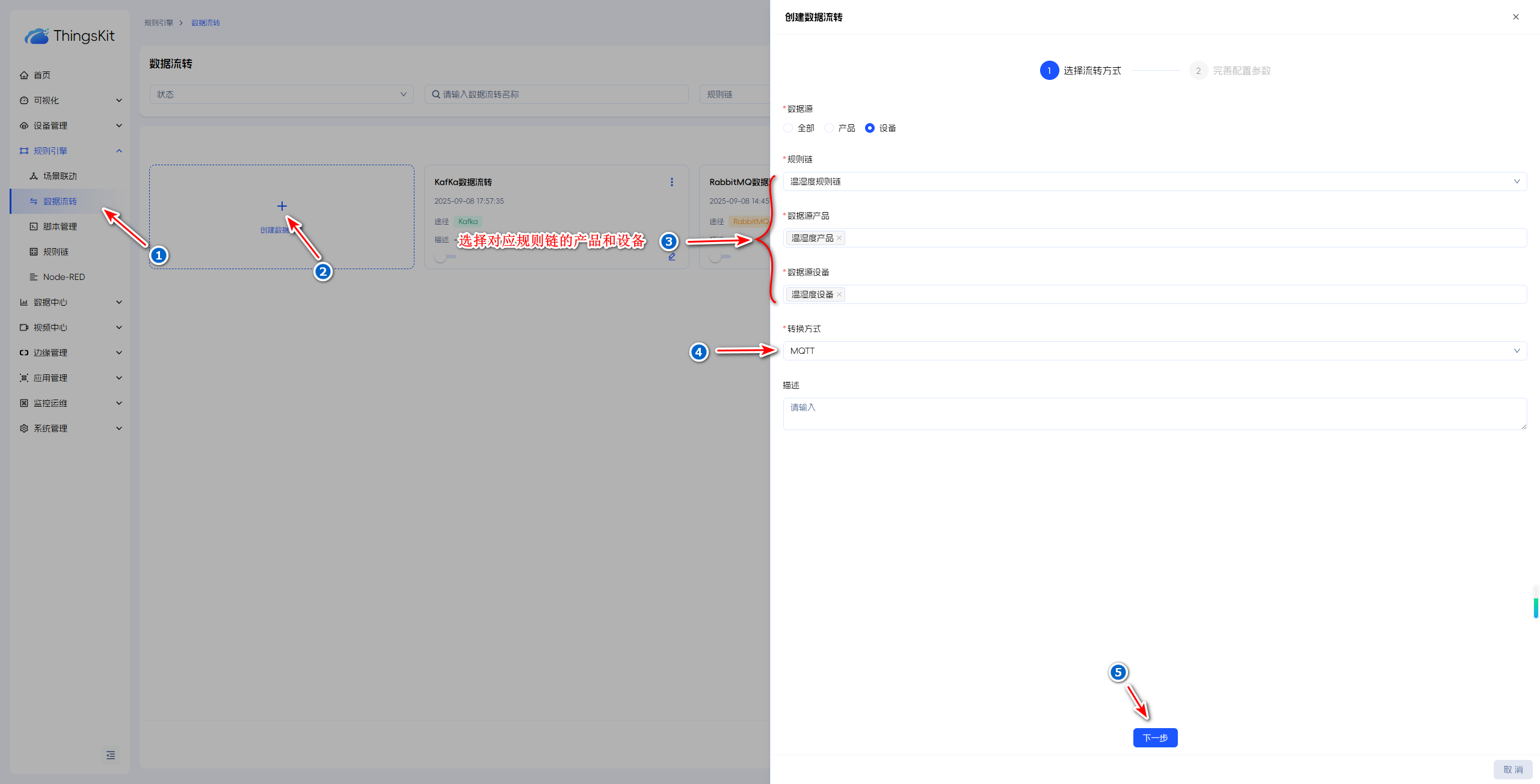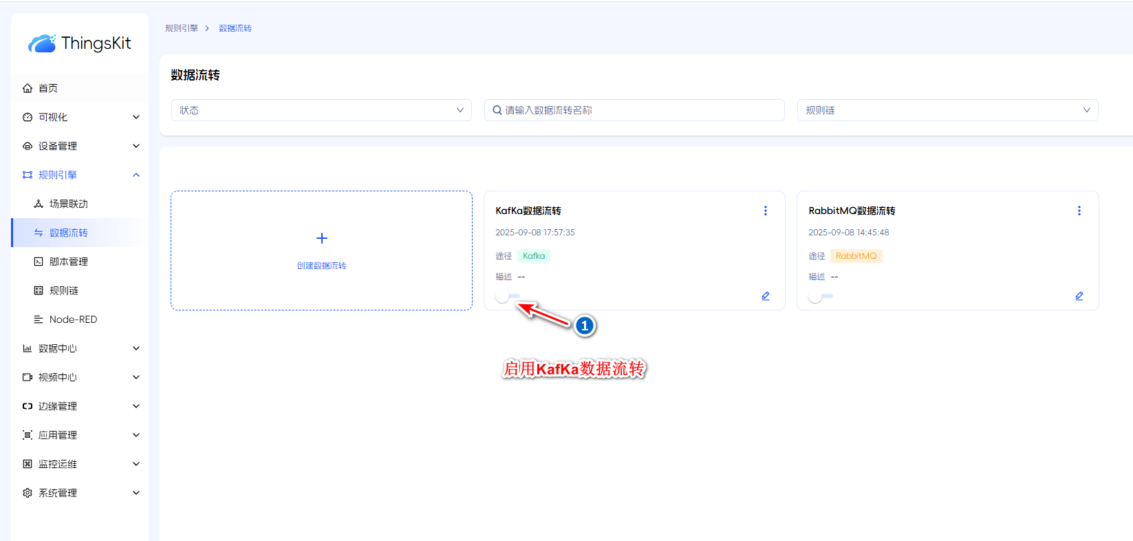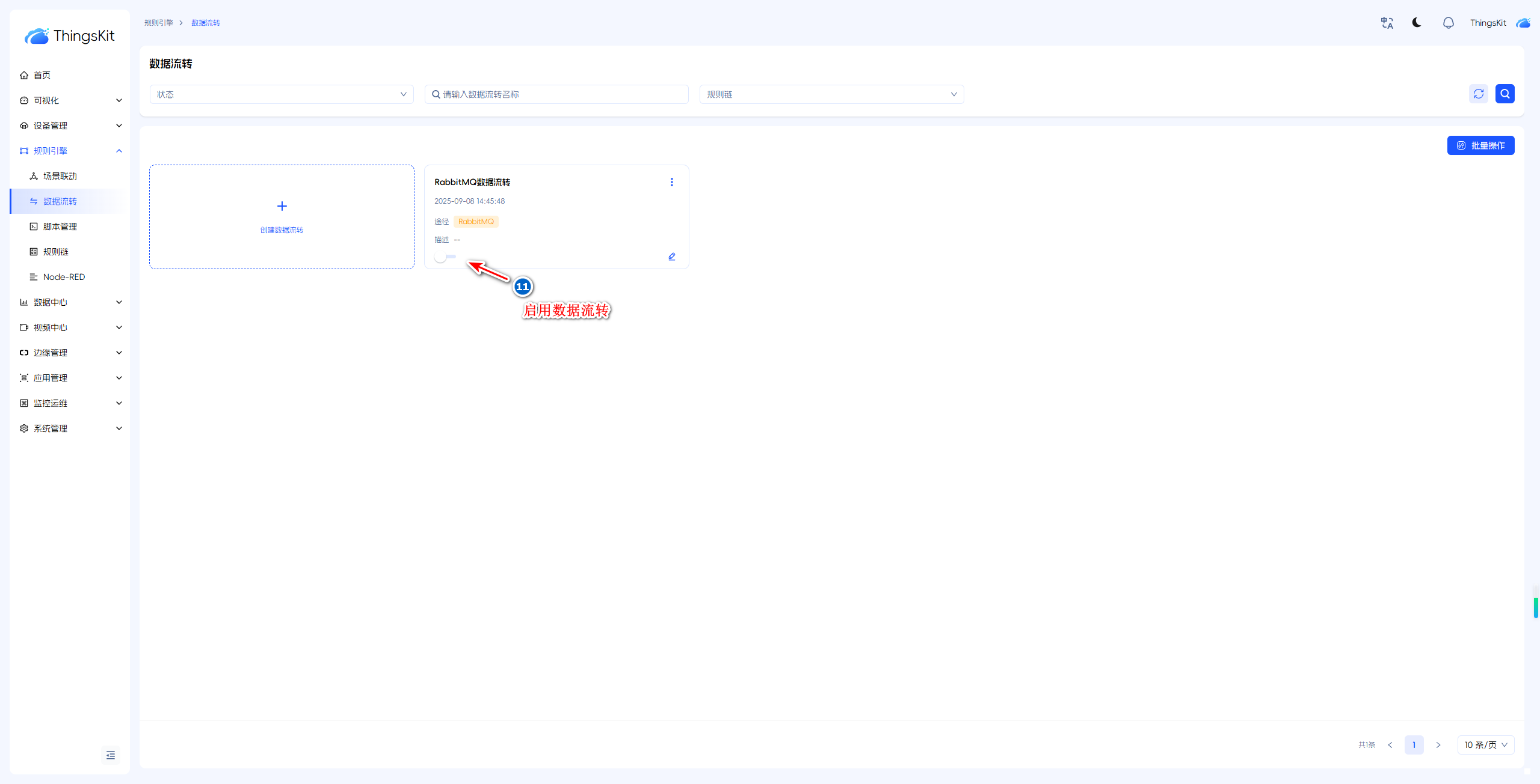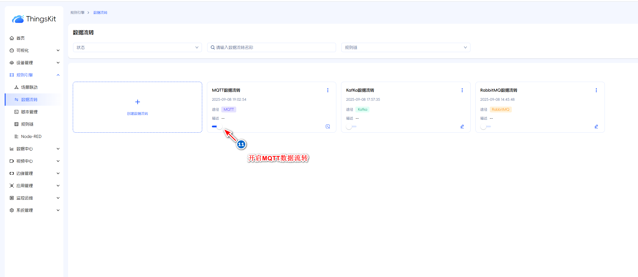 数据流转是规则引擎中处理和转换数据的常见方式。用户可以通过RabbitMQ、Kafka、MQTT、Rest Api这四种方式,将想要的数据转发出去。同时用户可以在 规则链 里面将脏数据行过滤、清洗等操作,以提高数据的质量、提高数据分析的准确性、增强数据的价值、减少冗余和重复数据。