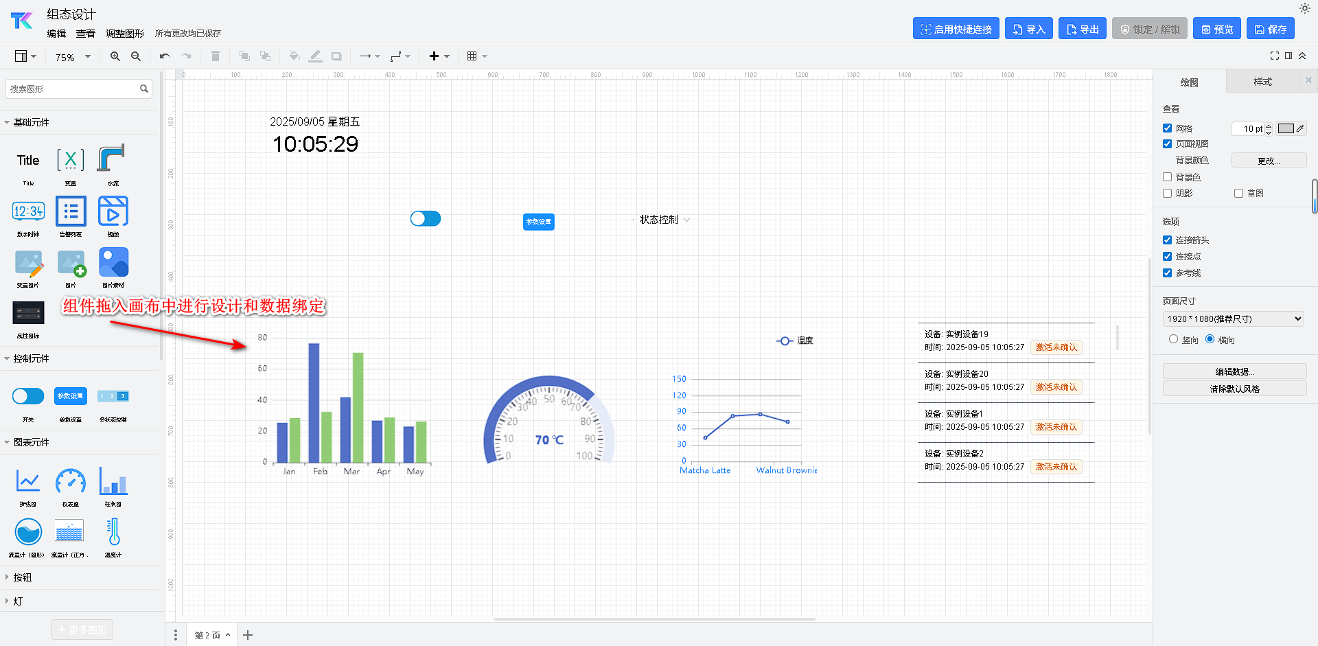 组件所绑定的设备如果未设置为公开,则数据不显示出来,控制组件操作也没有权限,设置为公开后,数据展示效果才能呈现。
