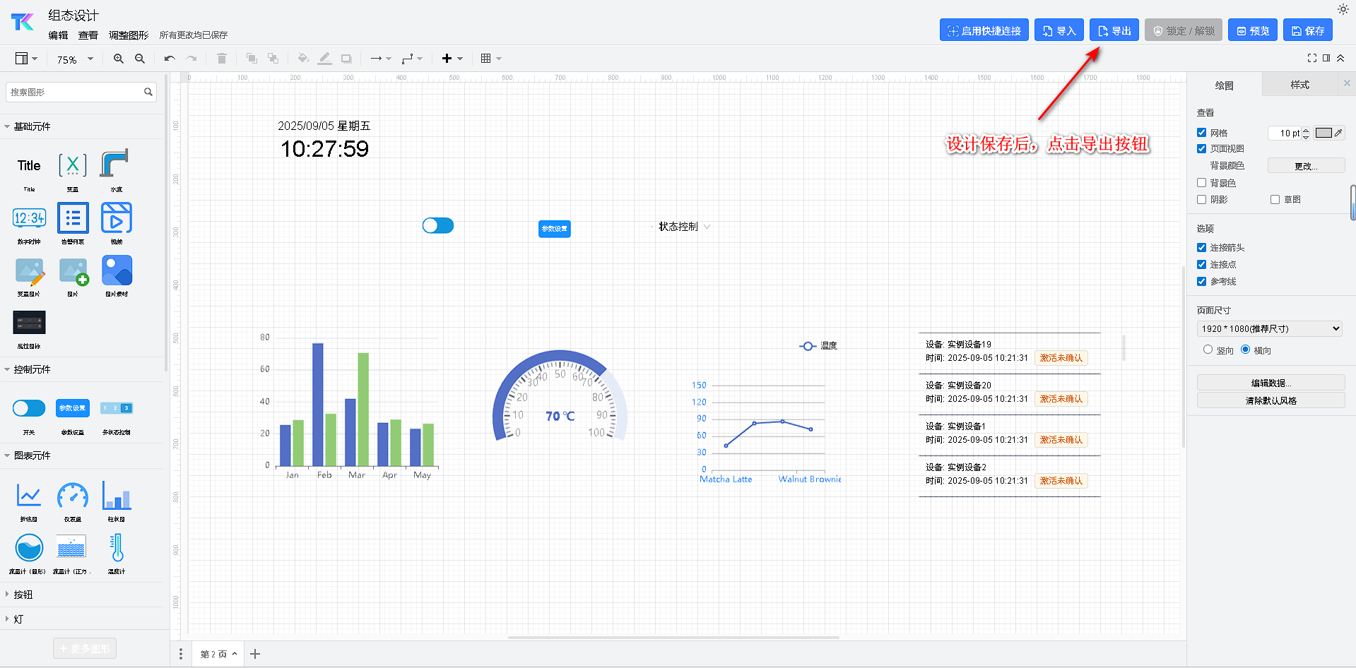 组态导入导出的功能主要是允许用户将模板从一个可视化组态中移动到另一个ThingsKit平台的可视化组态中。