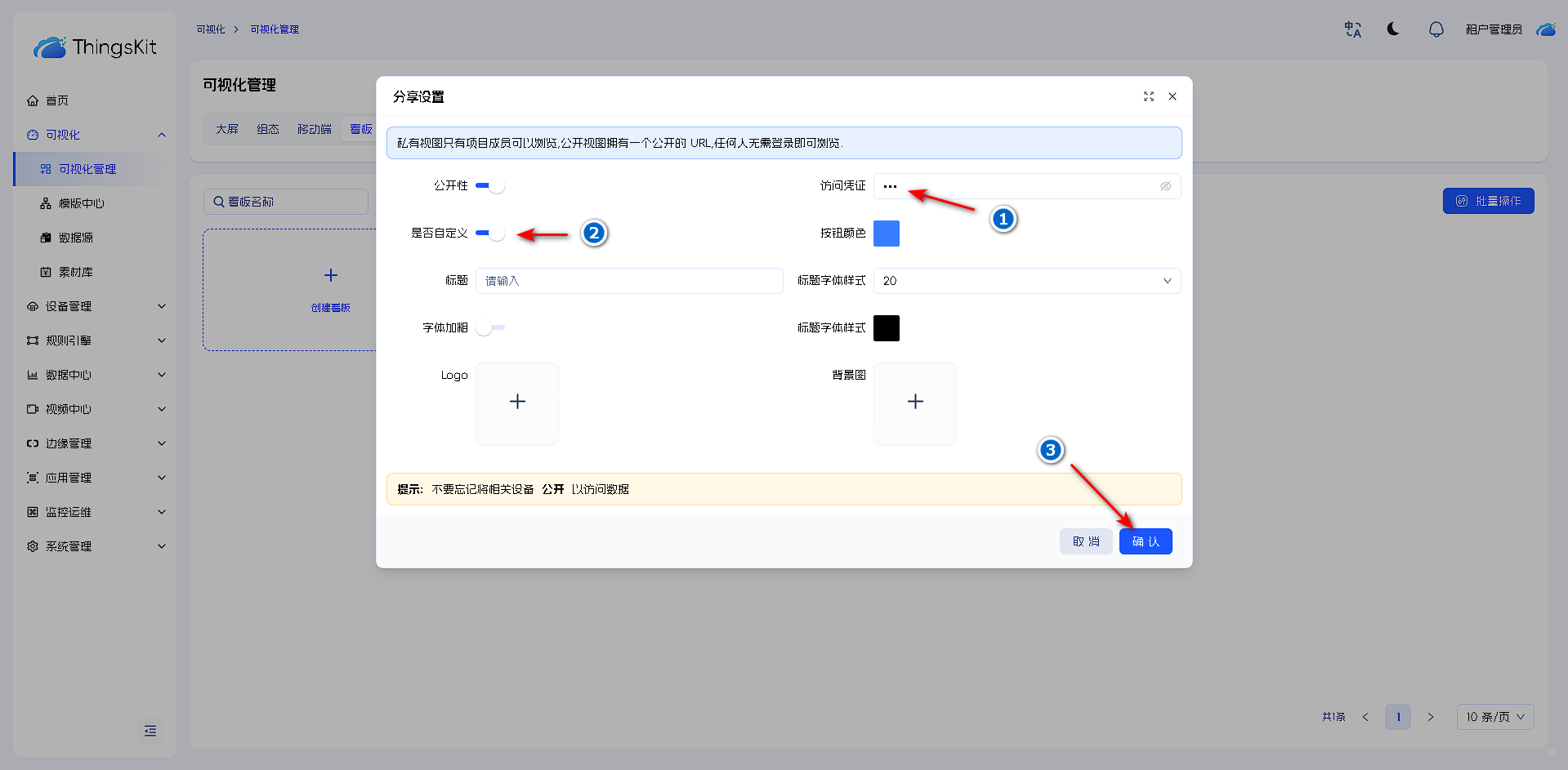 分享后界面如下,组件绑定的设备未公开,所以数据也未公开,只显示了组件样式。