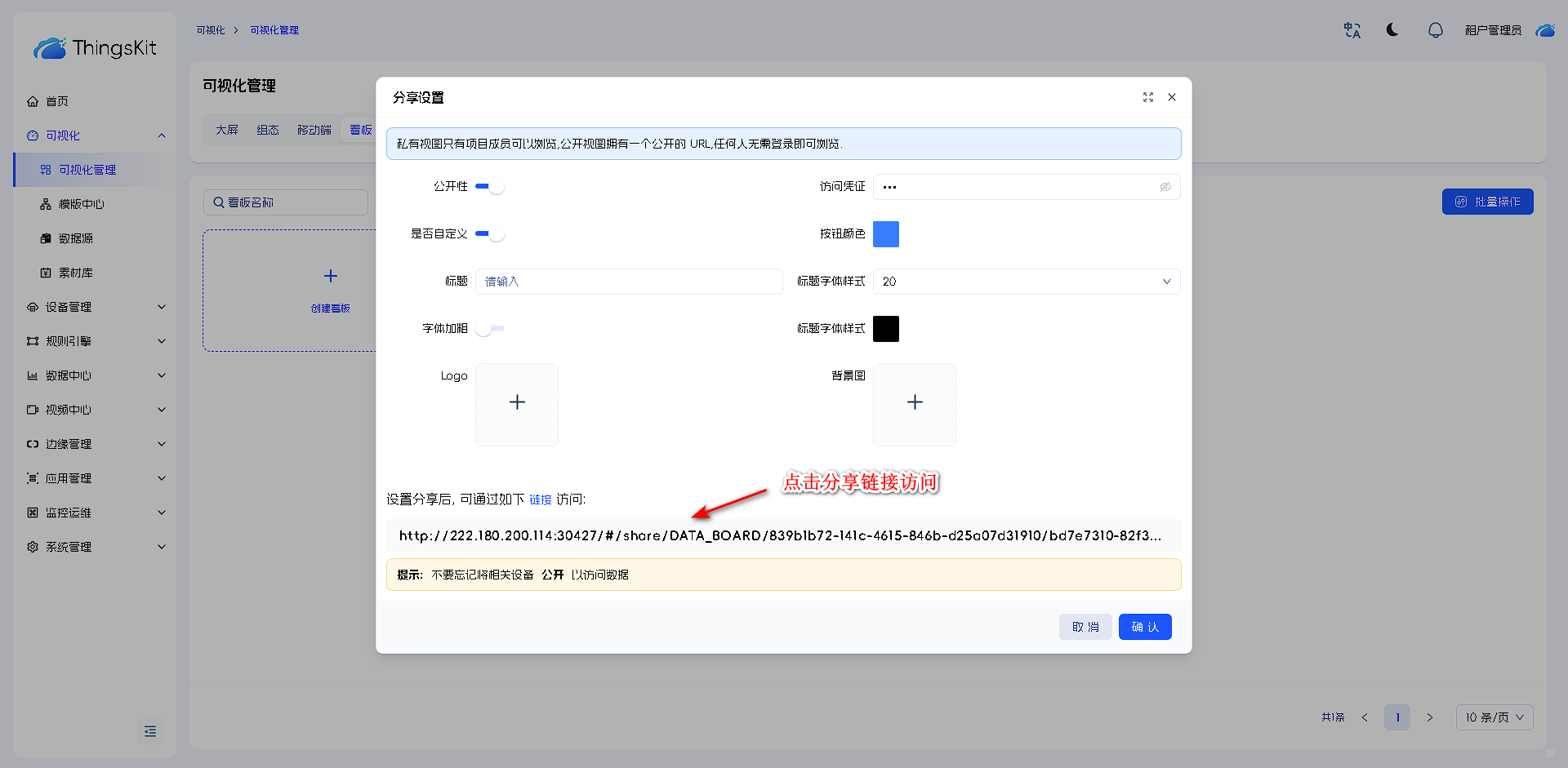 设计完成后,点击看板分享按钮,设置分享链接及样式等。