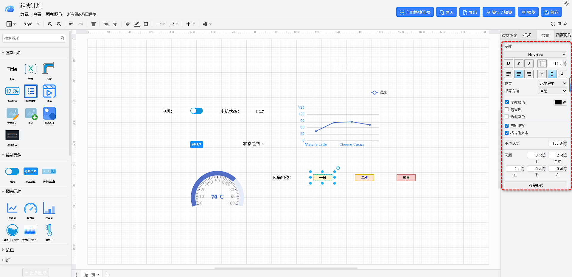 - 响应式设计:编辑器通常支持响应式设计,可以根据不同的屏幕大小和设备类型,自动调整组态布局和样式。