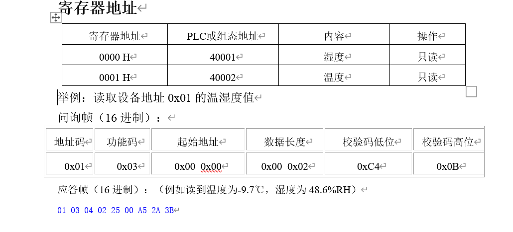PS:本次实践使用普锐森社温湿度变送器(扁卡轨壳485型),不修改地址码采集命令为: